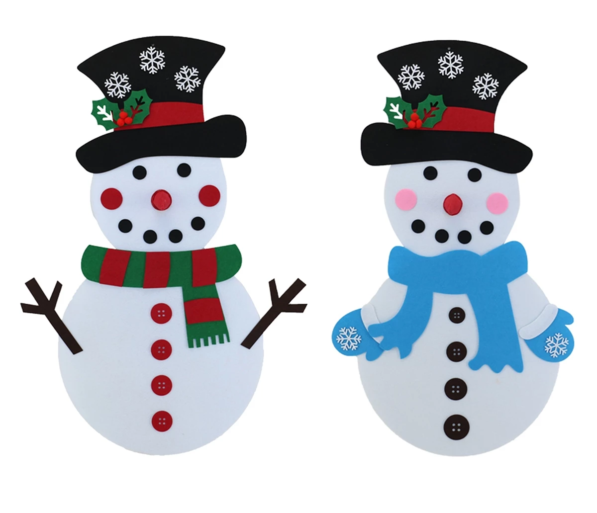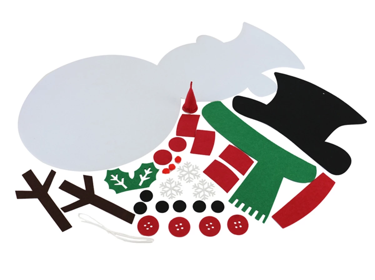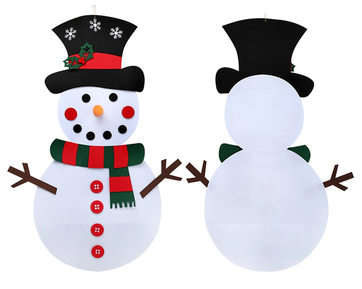 Plstěný sněhulák pro děti. Výborná hračka rozvíjející kreativitu těch nejmenších. Vybaveno 30 odnímatelnými ozdobami, které lze připevnit a odepnout kdekoli na vánočním stromku. Vyrobeno z lehkého a bezpečného materiálu (filc). Speciální přívěsek umožňuje zavěšení na zeď.