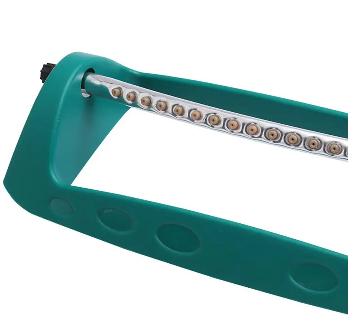 Automatický, oscilační zahradní zavlažovač vybavený 16 tryskami. Rozprašovací tryska je otočná a nastavitelná, což usnadňuje nastavení rozsahu postřiku. Pevná základna a podélné provedení zabraňují převrácení vlivem tlaku vody. Velmi jednoduchá montáž a obsluha, která vyžaduje pouze připojení hadice a spuštění vody. Možnost připojit hadici s 1/2'' a 3,4'' koncovkou.