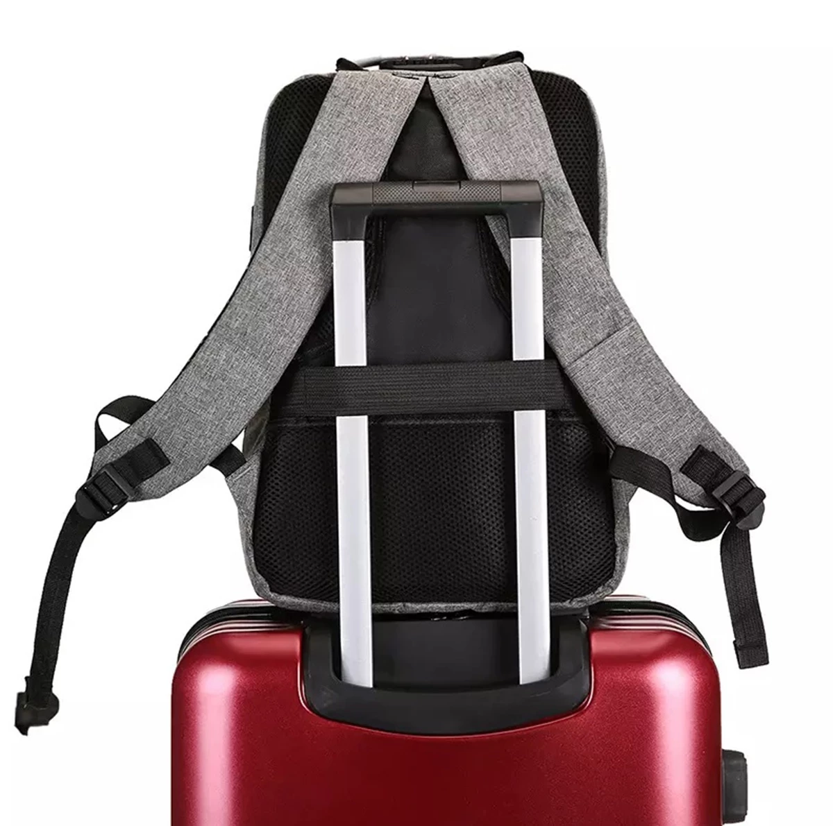 Batoh na notebook proti krádeži s integrovaným kombinačním zámkem. Má velkou hlavní přihrádku a další kapsy, které usnadňují sbalení všech potřebných věcí. Dodatečný otvor umožňuje připojení kabelových sluchátek a odvozený port USB typu A usnadní nabíjení telefonu. Pevné zipy zabraňují vypadnutí obsahu. Univerzální design se osvědčí jak při každodenním používání, tak i v oficiálnějších situacích.