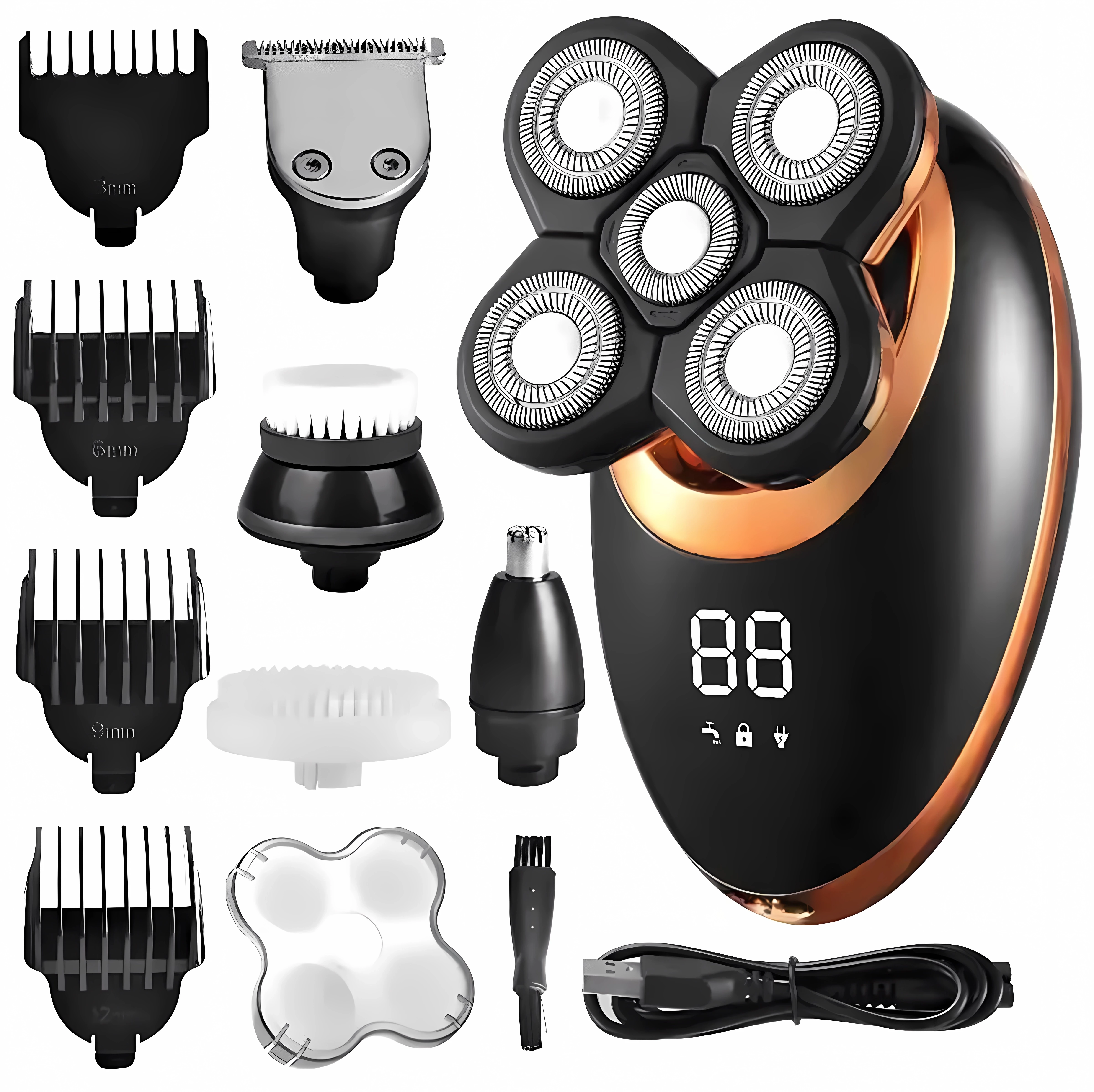 Holicí strojek pro stříhání vlasů, vousů a hlavy s funkcí zastřihovače. Přístroj rychle a pohodlně zastřihne jakékoli vousy a vyrovná vlasovou linii. Stroj je vybaven vestavěnou baterií a USB kabelem pro jeho nabíjení. Speciální, přesné břity se zvýšenou odolností zajistí důkladné a rovnoměrné oholení každé části obličeje. O vybité baterii a provozním režimu nás přístroj informuje prostřednictvím přehledného LCD displeje.