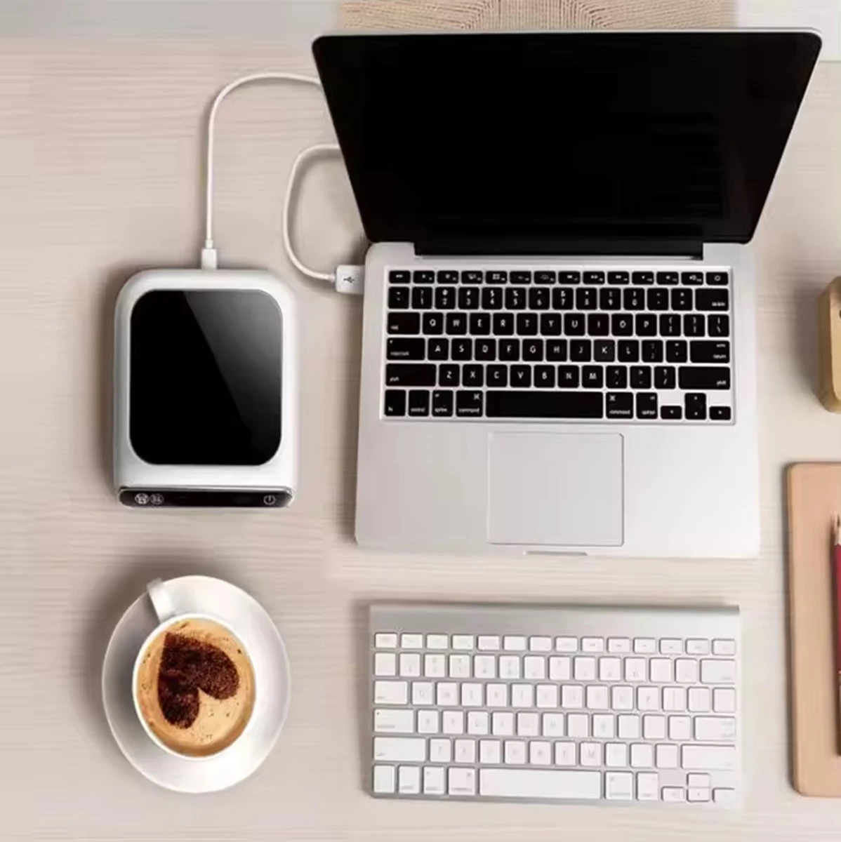 Elektrický ohřívač šálků napájený z USB. Okamžitě ohřeje kávu a čaj na přibližně 55 stupňů. Zařízení má funkci automatického vypnutí pro úsporu energie. Dodatečná ochrana proti opaření zvyšuje bezpečnost používání. Extrémně snadné použití - ohřívač se automaticky zapne, když na něj položíte hrnek/šálek s plochým dnem. Pohodlný ovládací panel s dotykovými tlačítky na přední straně zařízení.