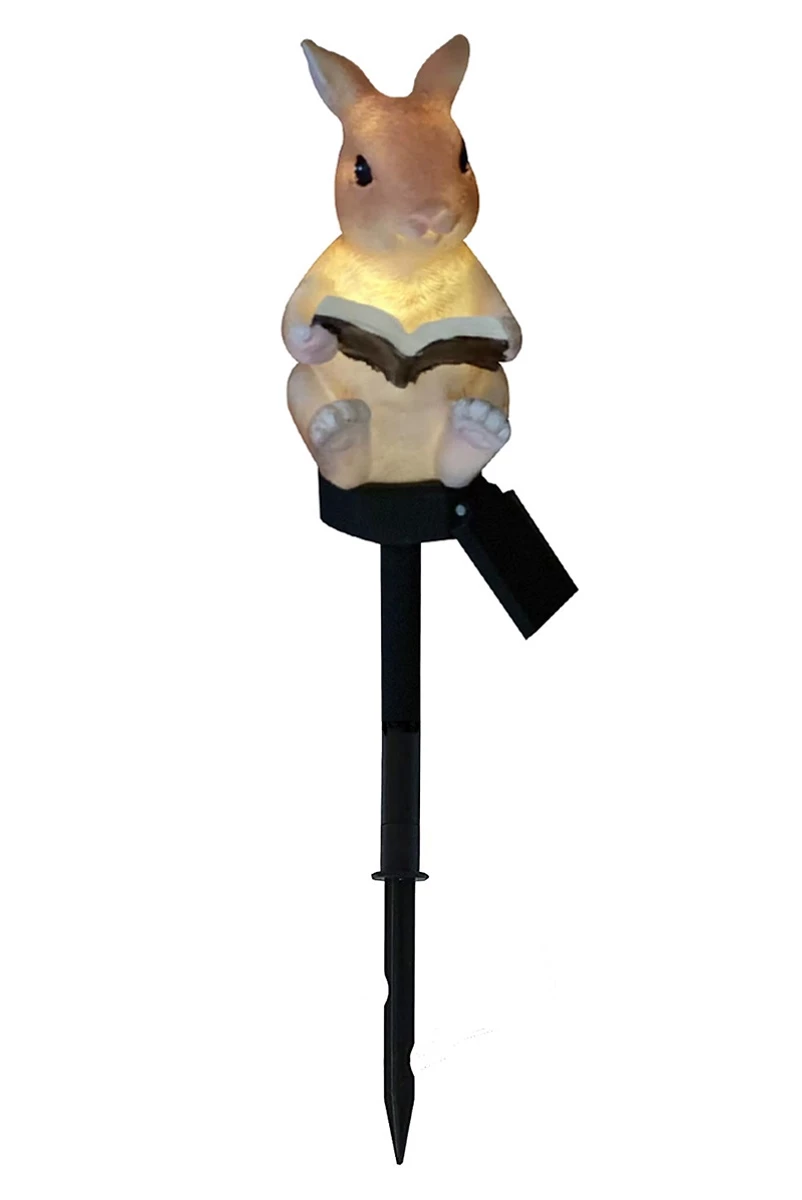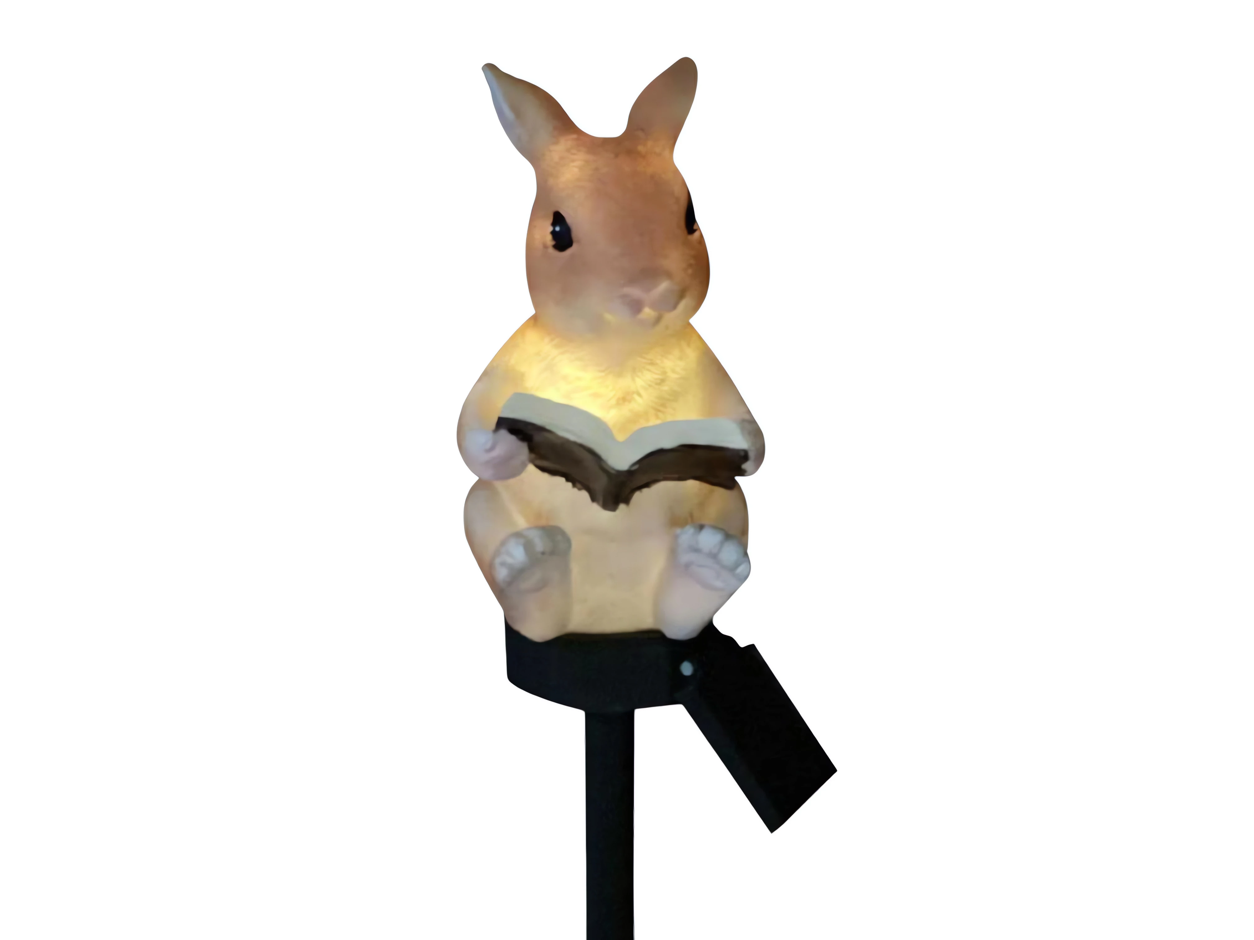 Neobvyklá, solární LED zahradní lampa ve tvaru králíka. Skvělý dekorativní prvek. Lampa je napájena solární energií, která využívá solární panel k nabíjení vestavěné dobíjecí baterie. Zařízení se automaticky spustí, když se setmí (je vybaveno senzorem soumraku) a plné nabití baterie postačí až na 8 hodin nepřetržitého provozu. Lampa má LED, která vyzařuje bílé světlo. Silný hrot umožňuje spolehlivou a rychlou instalaci lampy do země a vodotěsný kryt zaručuje bezproblémové použití bez ohledu na povětrnostní podmínky.