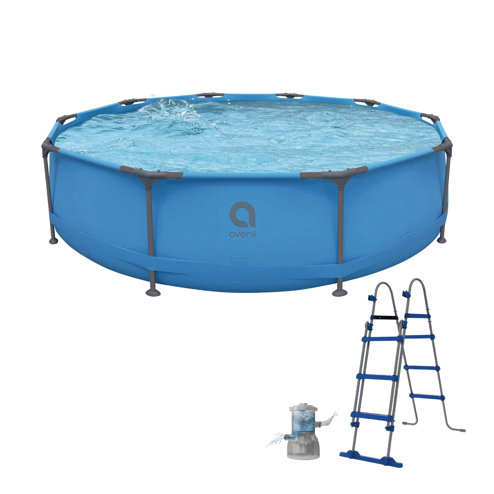 Užijte si osvěžení během horkých letních dnů přímo na vlastní zahradě. Stelažový bazén AVENLI o průměru 305 cm a výšce 76 cm je ideální pro rodinnou zábavu i relaxaci. Stabilní konstrukce z kovového rámu zajišťuje pevnost a dlouhou životnost, zatímco odolná třívrstvá PVC fólie poskytuje vysokou odolnost proti poškození.