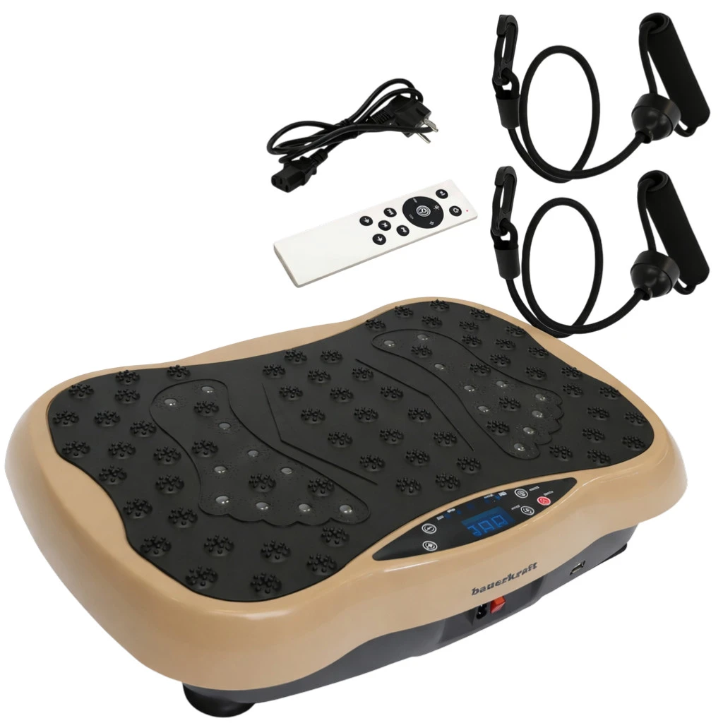 Vibrační platforma Bauerkraft H-214 je moderní zařízení pro podporu formování postavy, zlepšení krevního oběhu a snížení množství tukové tkáně. Pokročilý systém vibrací s amplitudou 10 mm intenzivně stimuluje svaly, aktivuje i stabilizační svalstvo a pomáhá zvyšovat sílu a vytrvalost. Díky kompaktní, stabilní konstrukci a béžovému provedení se zařízení snadno skladuje a esteticky zapadne do domácího prostředí.