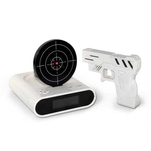 Nesnášíte raní vstávání a máte problém vylést z postele? Odkládáte budík pořád dokola protože je to jednodušší než vstát? Pořiďte si tento originální budík s terčem a nebojte se, že si budík ještě někdy odložíte. Nejprve nahrajte zprávu, kterou chcete, aby Vás budík budil a poté ho nastavte na určitý čas. Nejenže tento budík bude zvonit, ale také vyskočí terč, který musíte pomocí pistolky trefit. Dokud ho netrefíte, nepřestane hrát.