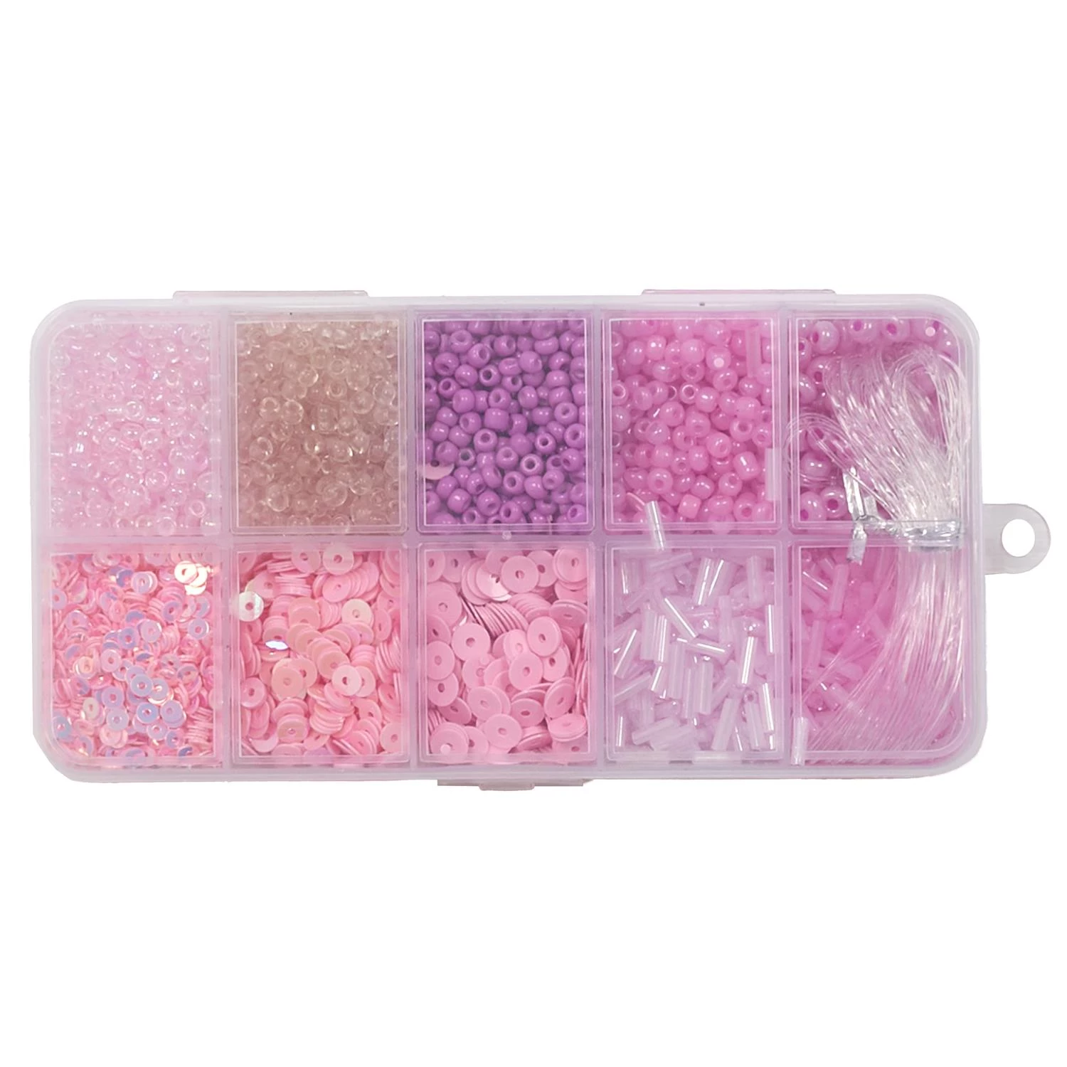 Vytvoř si vlastní stylové šperky! Tato kreativní sada obsahuje široký výběr barevných korálků, flitrů a provázků v praktickém plastovém boxu s přihrádkami. Ideální pro výrobu náramků, náhrdelníků, přívěsků nebo dekorací. Každá sada obsahuje jeden barevný motiv (růžový, zelený, modrý, fialový, červený a stříbrný) s 10 různými přihrádkami plnými materiálů. Skvělý dárek pro malé kreativce, nebo jako doplněk do výtvarného koutku doma či ve škole.