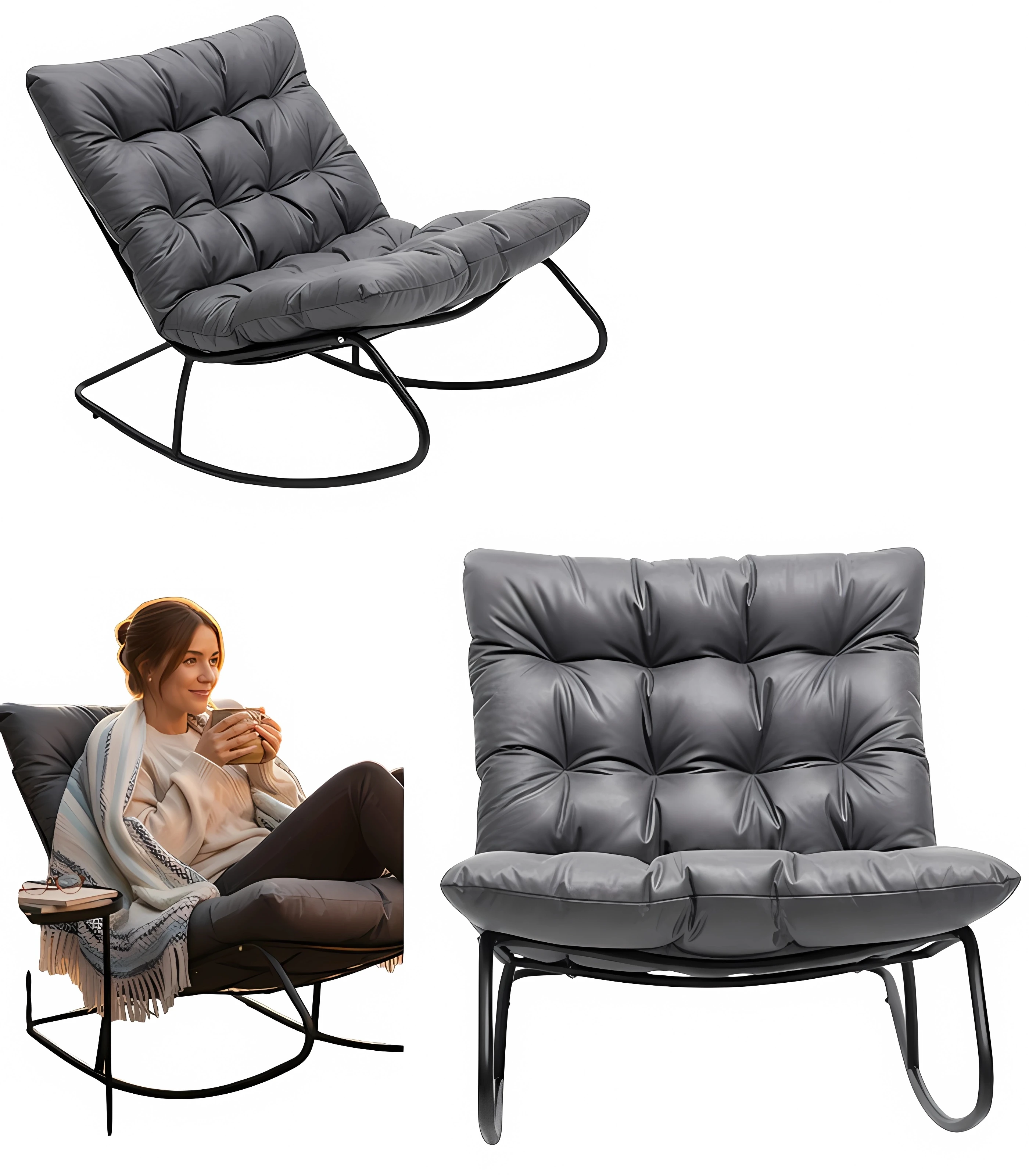 Toto stylové a neuvěřitelně pohodlné houpací křeslo je ideálním místem k odpočinku po dlouhém dni. Má široký sedák o šířce 80 centimetrů a měkký polštář, který zaručuje naprosté pohodlí a relaxaci. Jemně zaoblený tvar se přizpůsobí vaší postavě, podepře páteř a uvolní unavené svaly. Je to perfektní způsob, jak se po práci ponořit do klidu a relaxace.