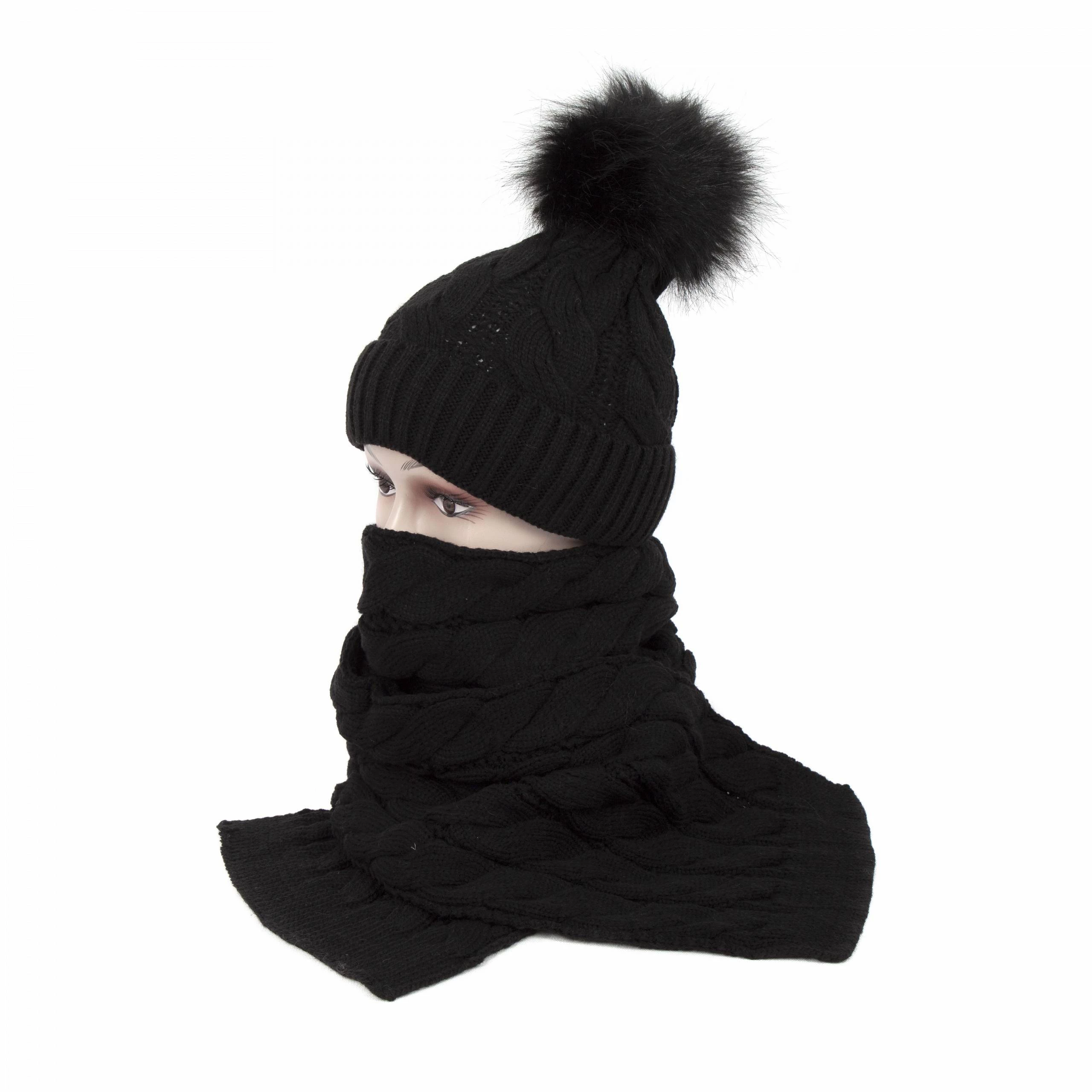 Haker W363 Dámský zimní set čepice s bambulí a šála černá