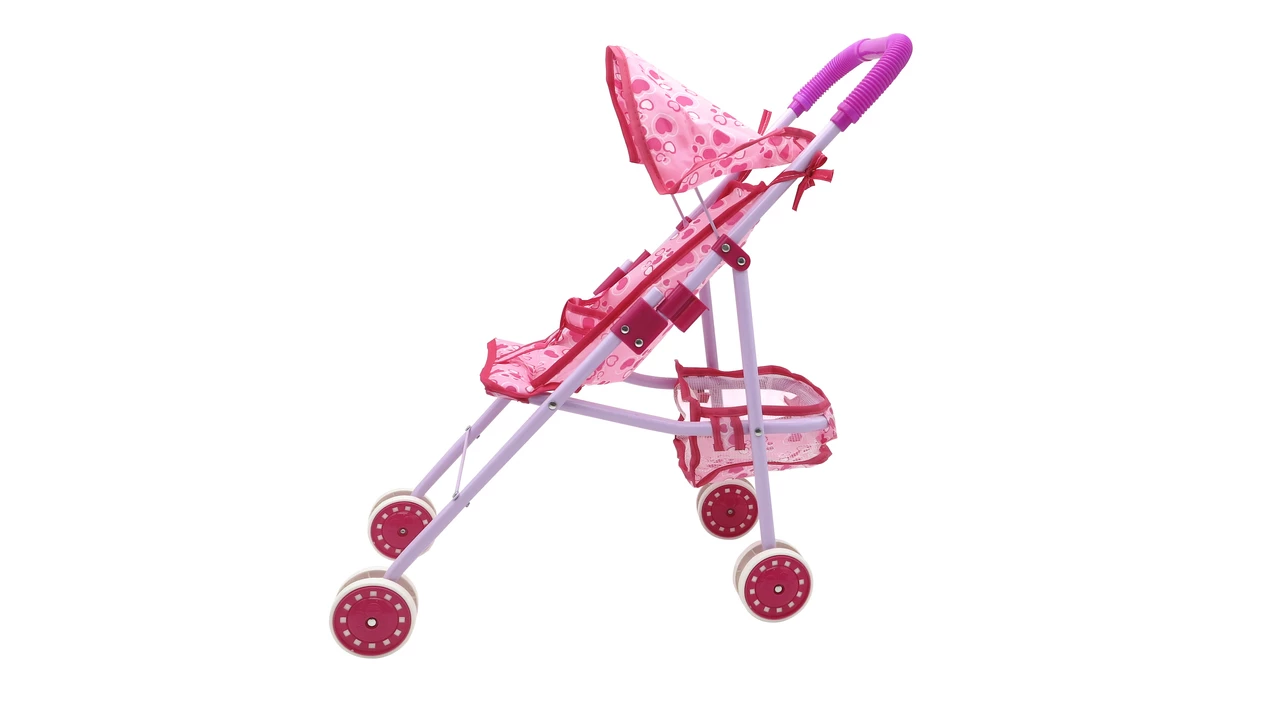 Růžový kočárek je stylovým doplňkem pro procházky s oblíbenou panenkou vašeho dítěte.