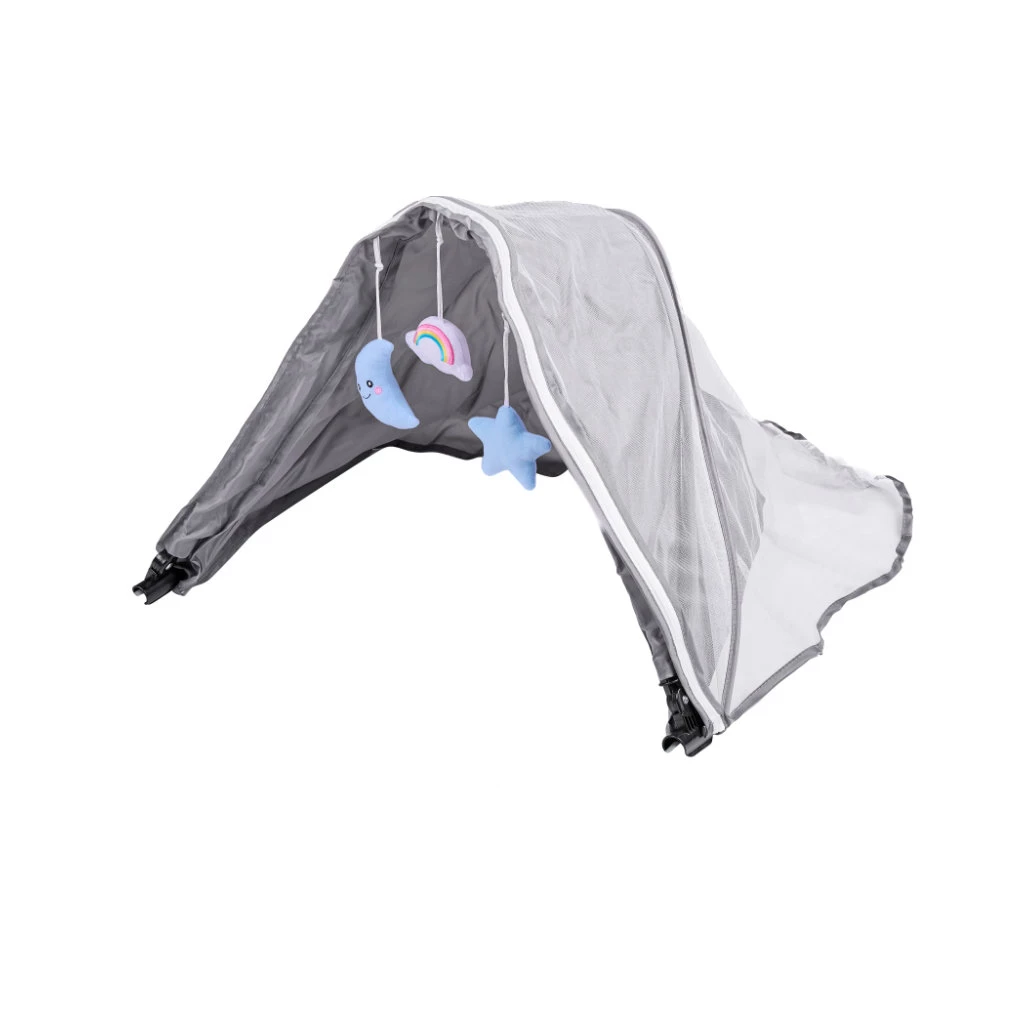 Stříška s moskytiérou a medvídky - chrání před hmyzem a poskytuje atrakci pro dítě