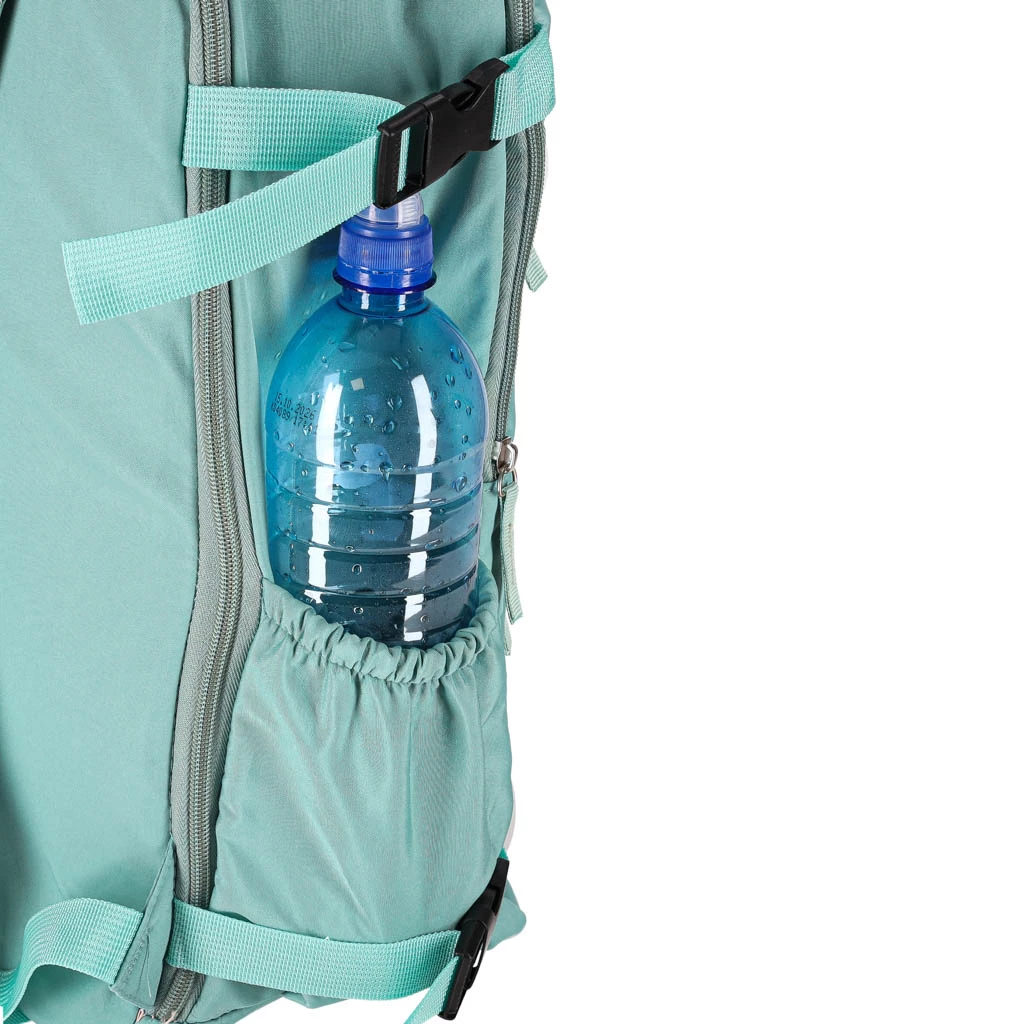 Počet vnějších kapes: 4 (2 přední kapsy na zip a 2 boční kapsy na lahve s gumičkou).