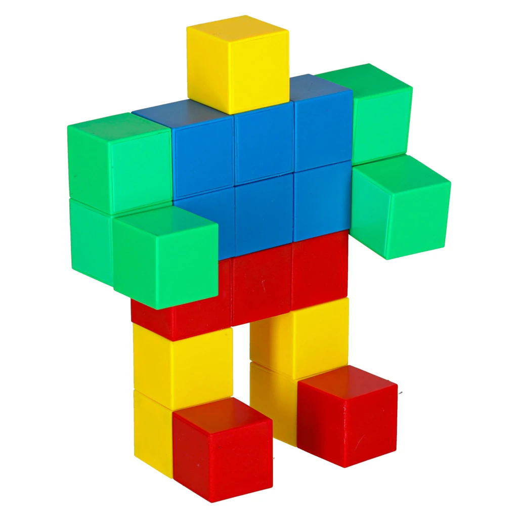 Tato sada 32 magnetických kostek umožňuje dětem vytvářet různé tvary a struktury. Každá kostka má čtvercový tvar a spojuje se s ostatními pomocí vestavěných magnetů, což zajišťuje stabilitu konstrukce. Kostky se dodávají ve čtyřech barvách: zelená, žlutá, červená a modrá. Tato hračka podporuje rozvoj jemné motoriky, kreativity a logického myšlení.