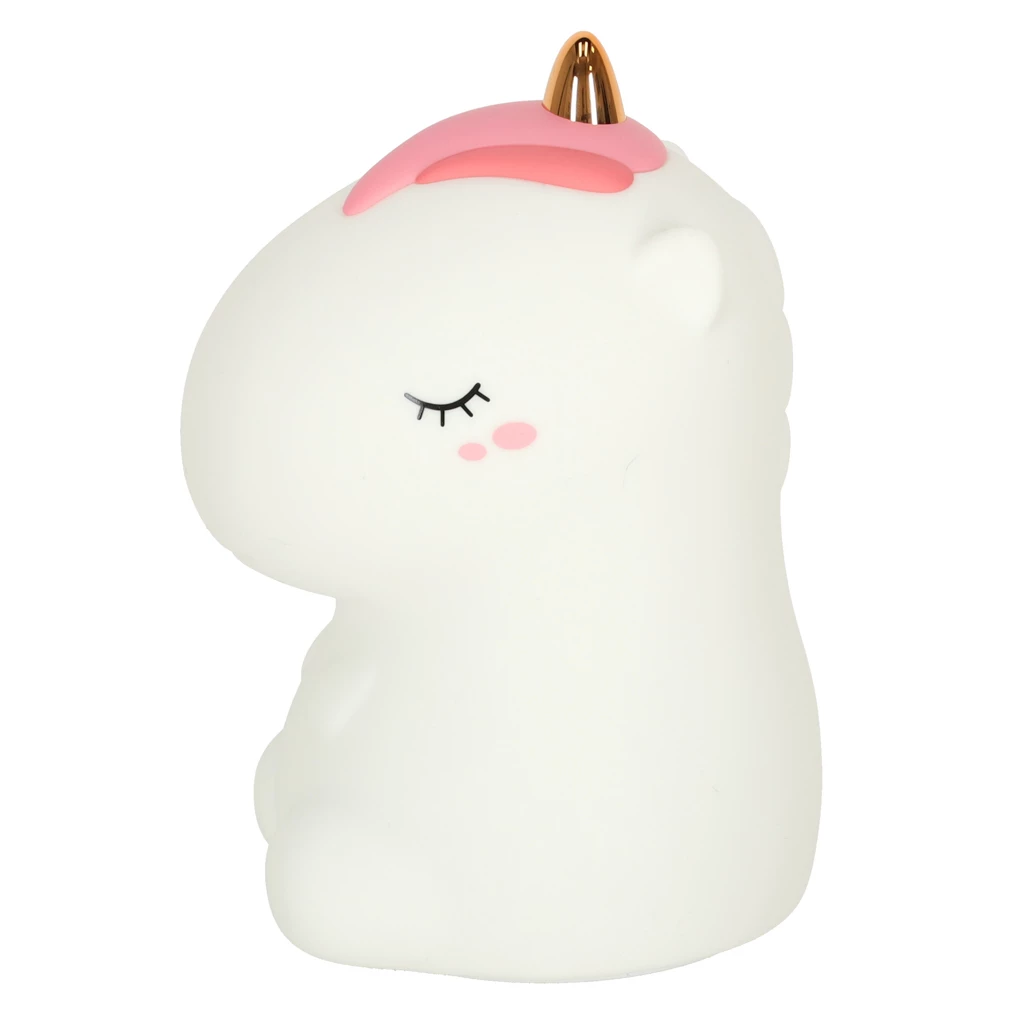 Toto měkké silikonové noční světlo ve tvaru jednorožce není jen okouzlující dekorací dětského pokoje, ale také praktickým doplňkem. Jemné světlo vyzařované lampou pomůže dětem cítit se bezpečně, když usínají. Lampa má časovač, který se po hodině automaticky vypne, čímž šetří energii a zajišťuje optimální dobu spánku. Nabitá baterie vydrží 9 až 10 hodin (v závislosti na zvoleném režimu). Ovládání lampy je neuvěřitelně jednoduché a intuitivní – stačí se jí dotknout a přepínáte mezi různými režimy osvětlení: teplé bílé světlo, světlo s proměnlivou barvou (RGB), vybraná statická barva nebo vypnuto. Lampu lze nabíjet pomocí přiloženého USB kabelu.