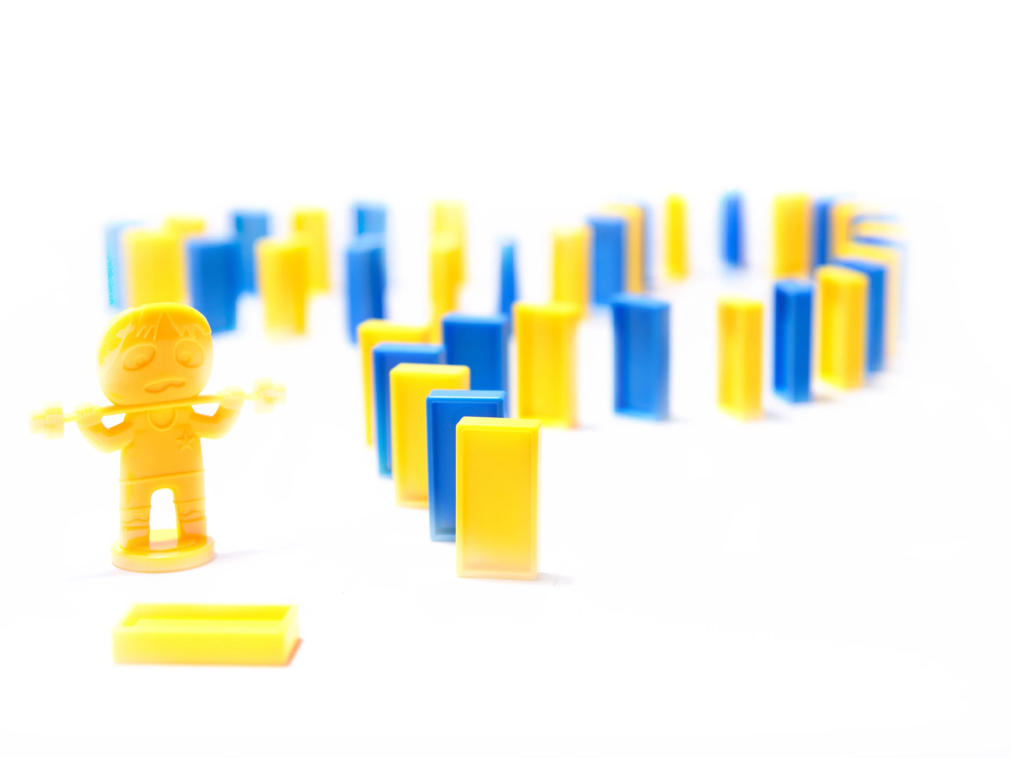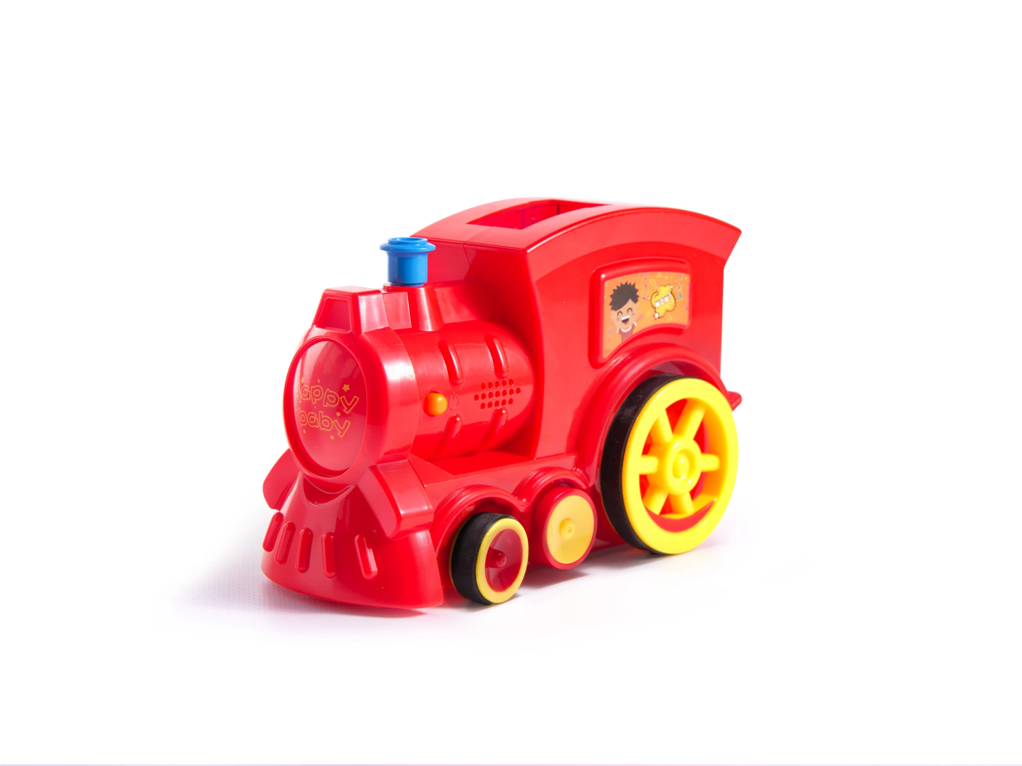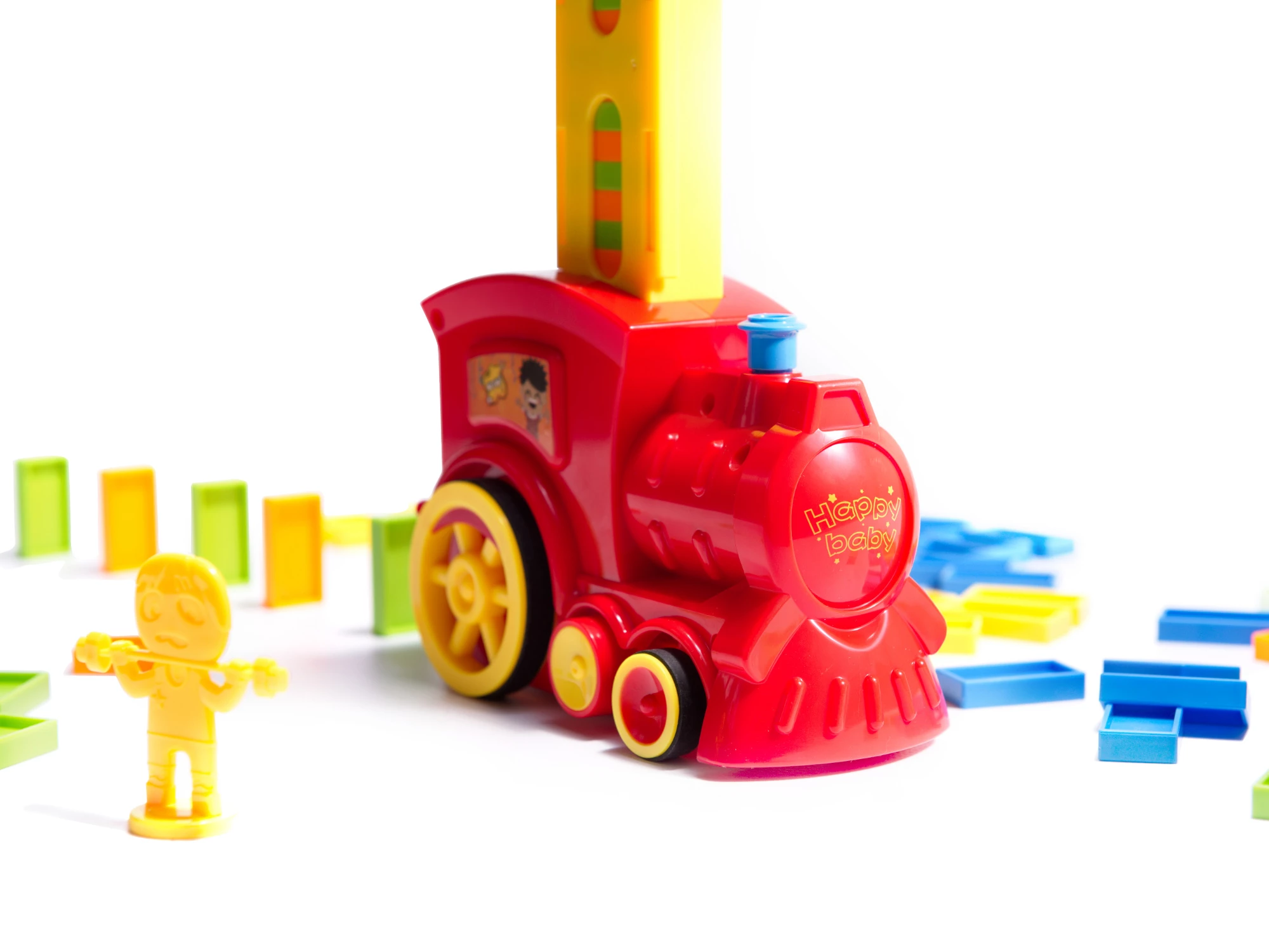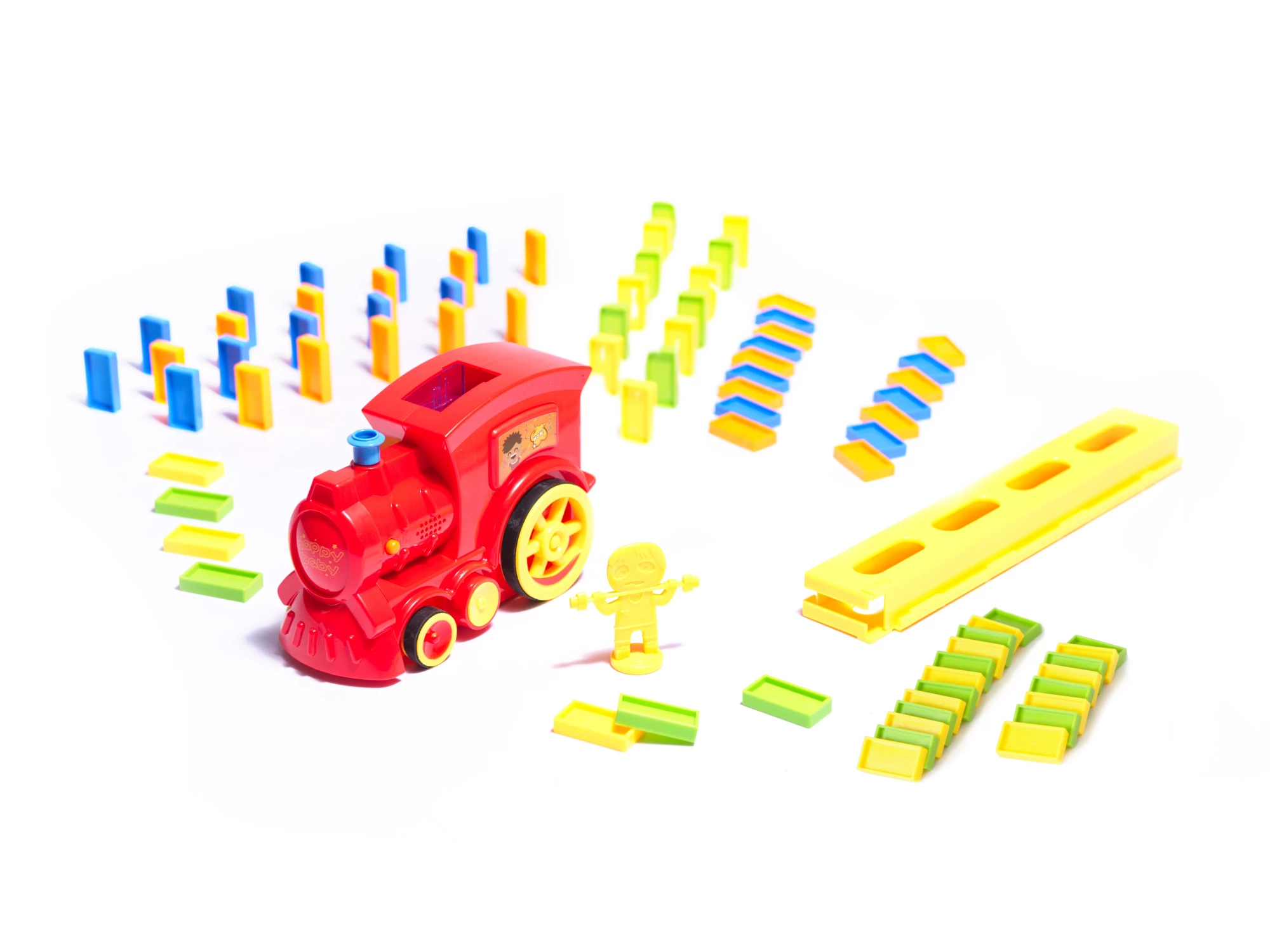 Stavěcí vláček domino je velmi zábavná hračka pro děti od 3let. Do vláčku se nasadí nástavec, do kterého se vloží kostky domina a při jízdě se domino samo staví. Vláček svítí a cinká. Při nárazu změní směr jízdy a pokračujedál.