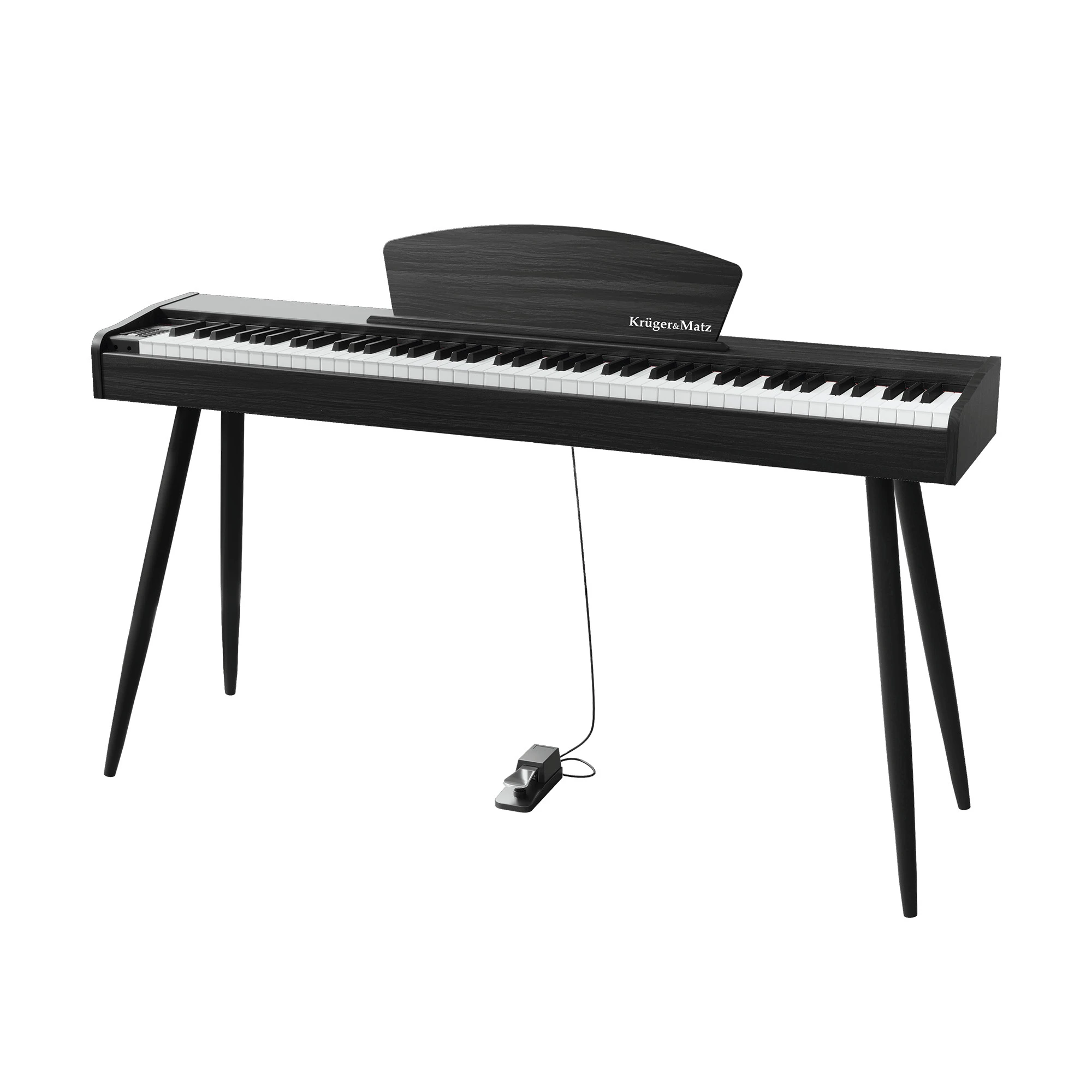 Digitální piano Krüger&Matz KMDP-45P-BK v černé matné úpravě kombinuje plnohodnotnou hru s bohatou výbavou funkcí. Klaviatura s 88 klávesami využívá kladívkovou plně vyváženou mechaniku s dynamikou úhozu, díky čemuž nabízí přirozený pocit ze hry. K dispozici je polyfonie 192 hlasů a přehledný LCD displej pro pohodlné ovládání.
