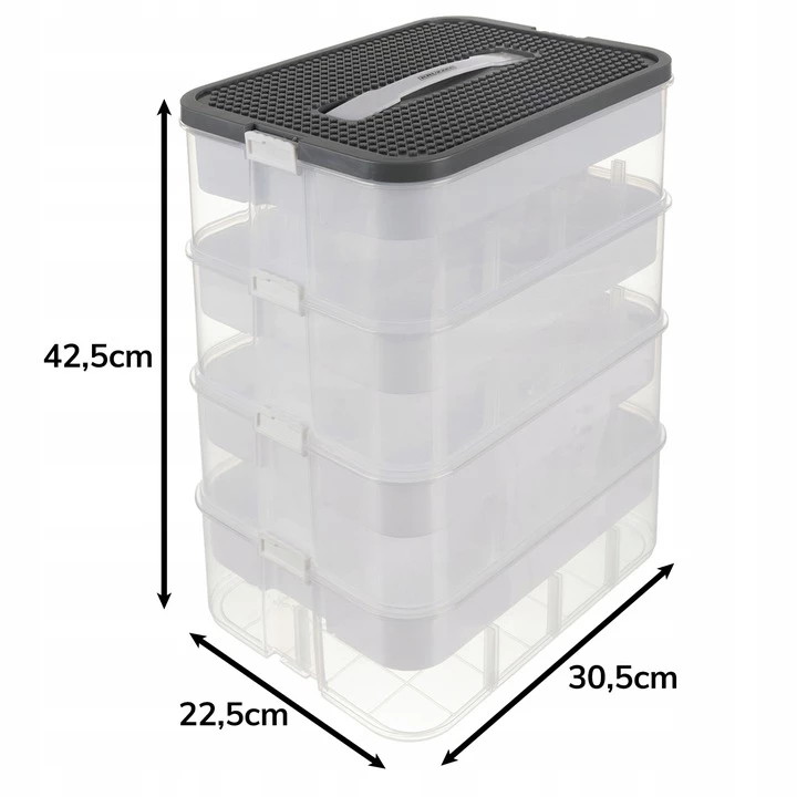 Silné a odolné západky zabraňují náhodnému otevření nádoby, a to i při intenzivním používání dětmi. Díky nim je každá úroveň organizéru bezpečně uzavřena, což zajišťuje bezpečnost a pořádek během hry a skladování.