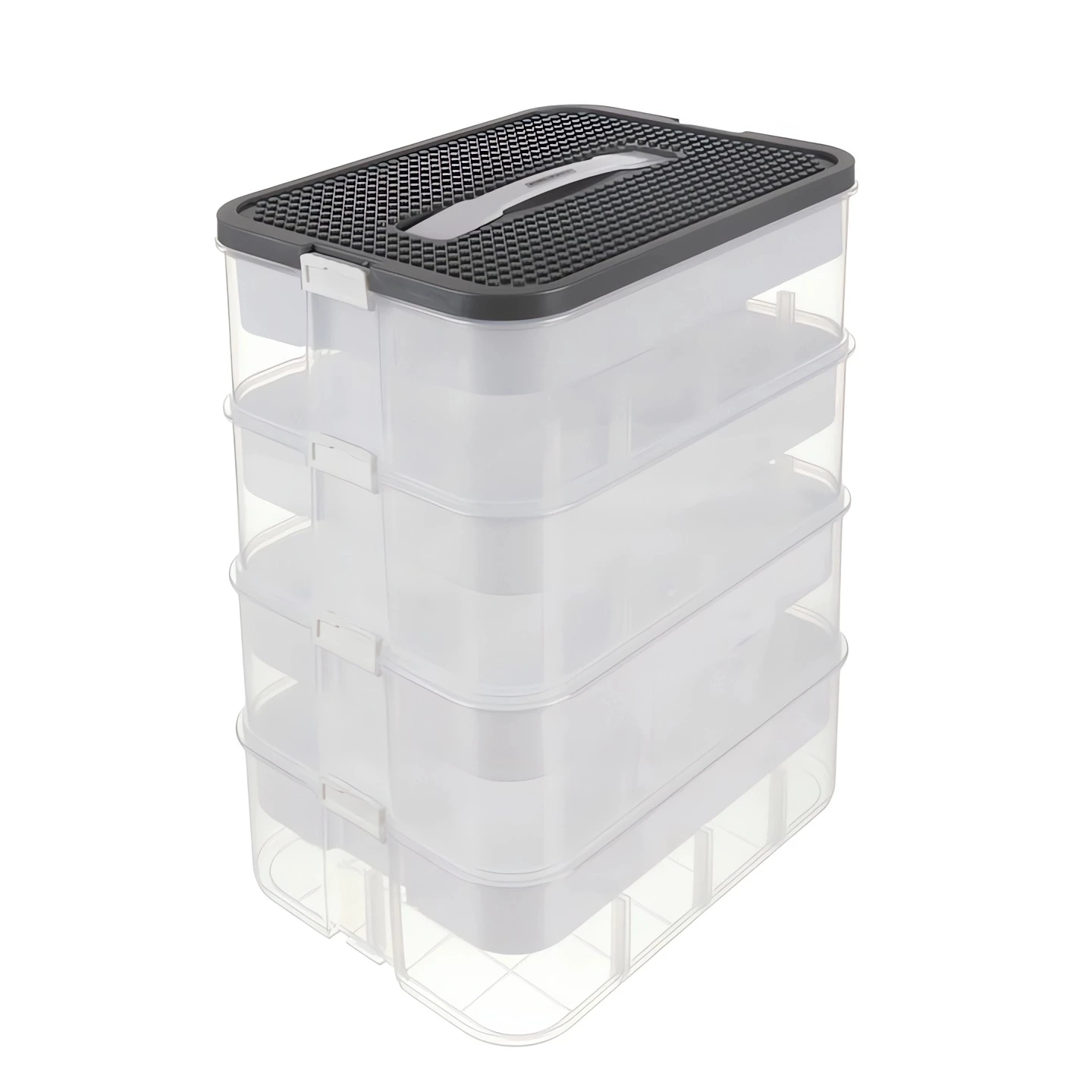 Velký organizér se skládá ze 4 úrovní, které poskytují dostatek prostoru pro uložení různých sad kostek, hraček nebo kreativních doplňků. Každou úroveň lze oddělit, což usnadňuje přístup k obsahu, aniž byste museli celý organizér rozebírat.