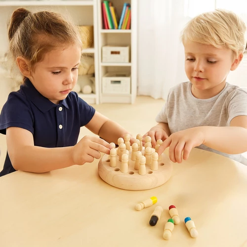 Paměťové šachy od značky Kruzzel jsou zábavnou a vzdělávací hračkou pro děti i dospělé. Cílem hry je zapamatovat si polohu figurek s barevnými kolíčky skrytými uvnitř. Hráči házejí barevnou kostkou a snaží se najít figurku se správnou barvou. Skvělý způsob, jak rozvíjet paměť, koncentraci a jemnou motoriku dětí!