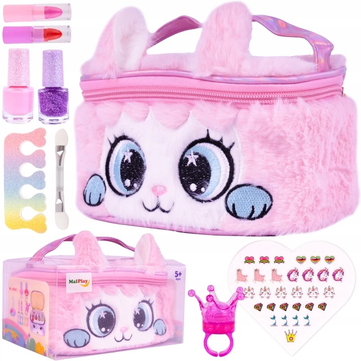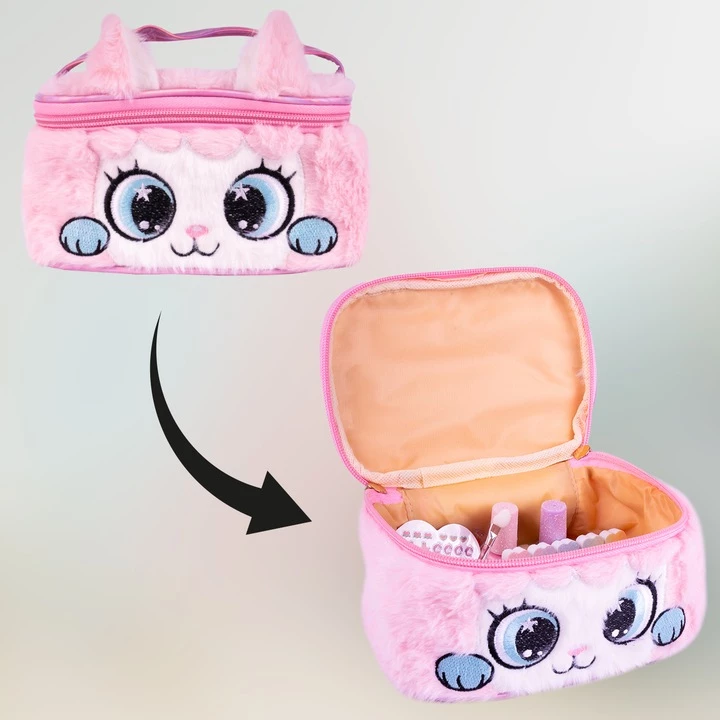 Kouzelná dětská kosmetická sada v roztomilé plyšové taštičce s motivem kočičky potěší všechny malé parádnice!