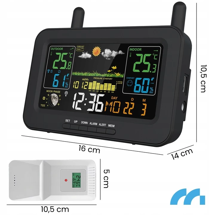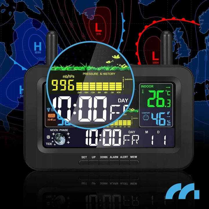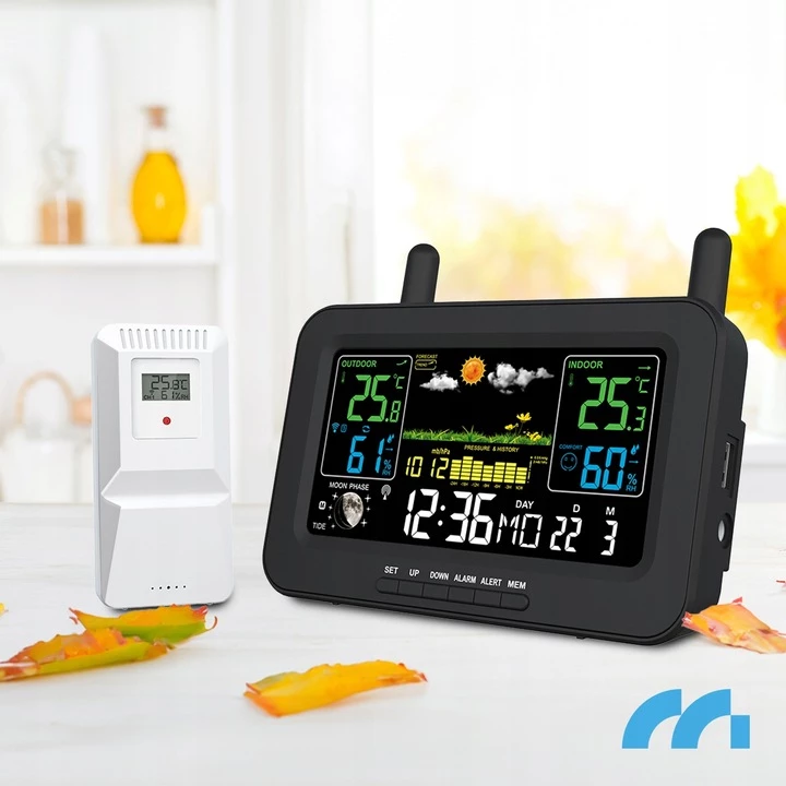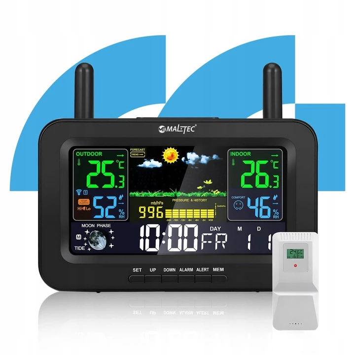 Stanice vám umožňuje přesně měřit klíčové parametry počasí uvnitř i vně vašeho domova. Kromě teploty a vlhkosti zařízení zaznamenává také atmosférický tlak, což vám poskytuje kompletní obraz o počasí.