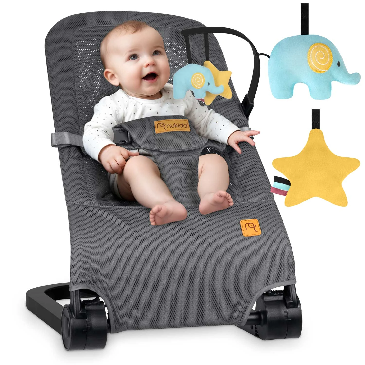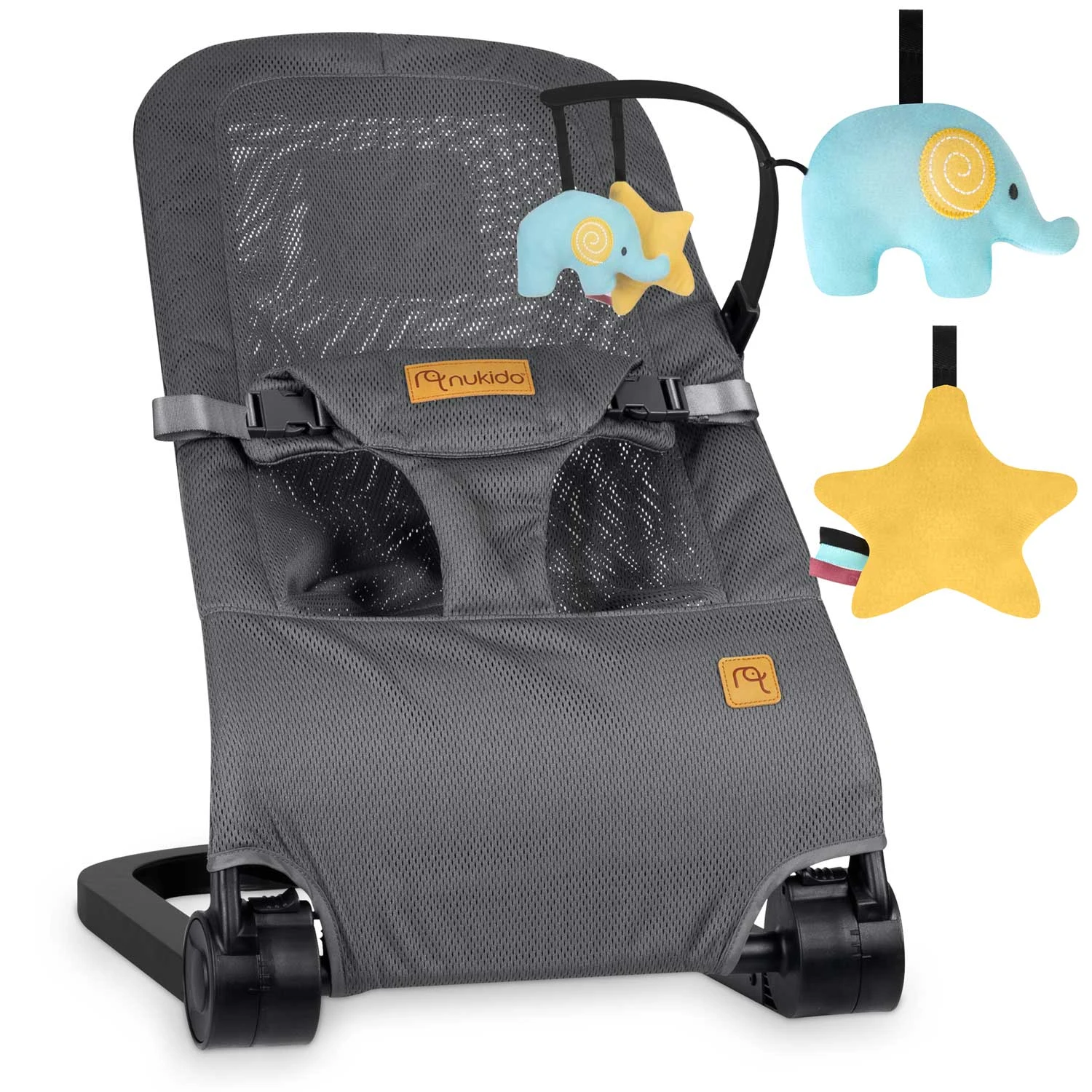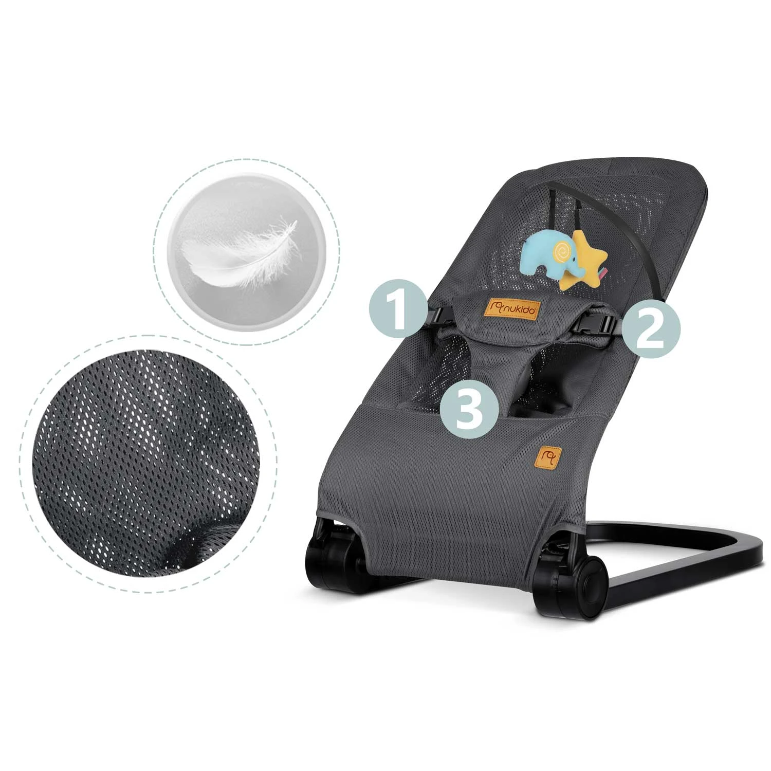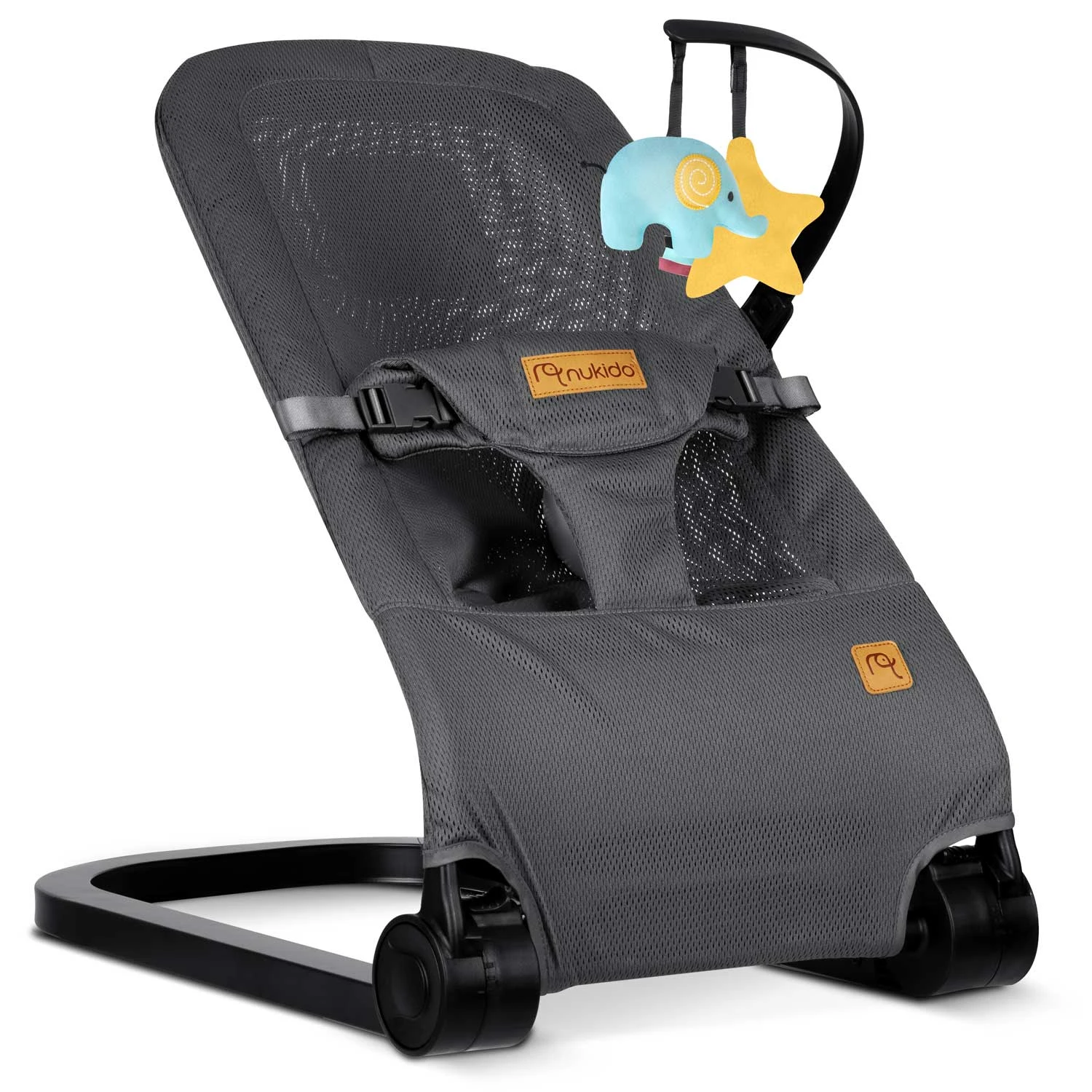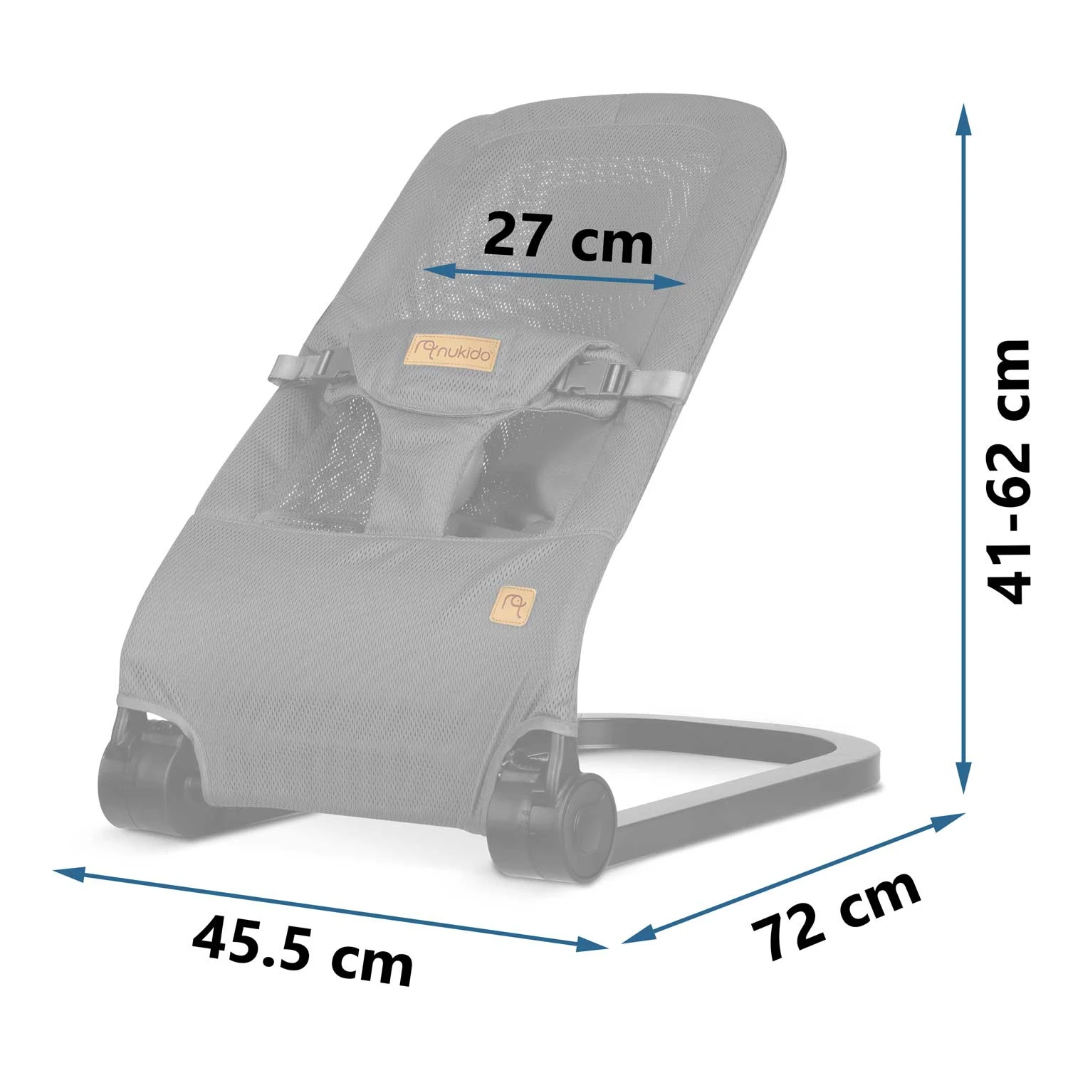 Nukido Baby Bouncer NK-52 je leháček-bujaček 2v1 s odnímatelným obloukem a měkkými hračkami, který podporuje aktivní hru a přirozený rozvoj miminka. Promyšlená konstrukce nepřestimulovává, ale motivuje k zapojení smyslů i pohybu. Provedení v šedé barvě, měkké sedátko a prodyšné, na dotek příjemné textilie zajišťují pohodlí i v teplejších dnech.