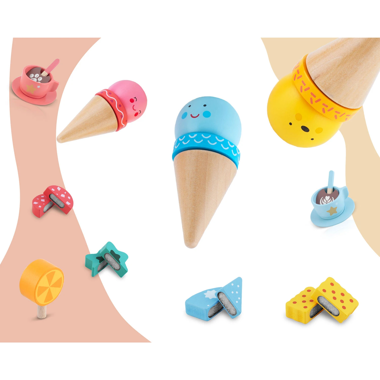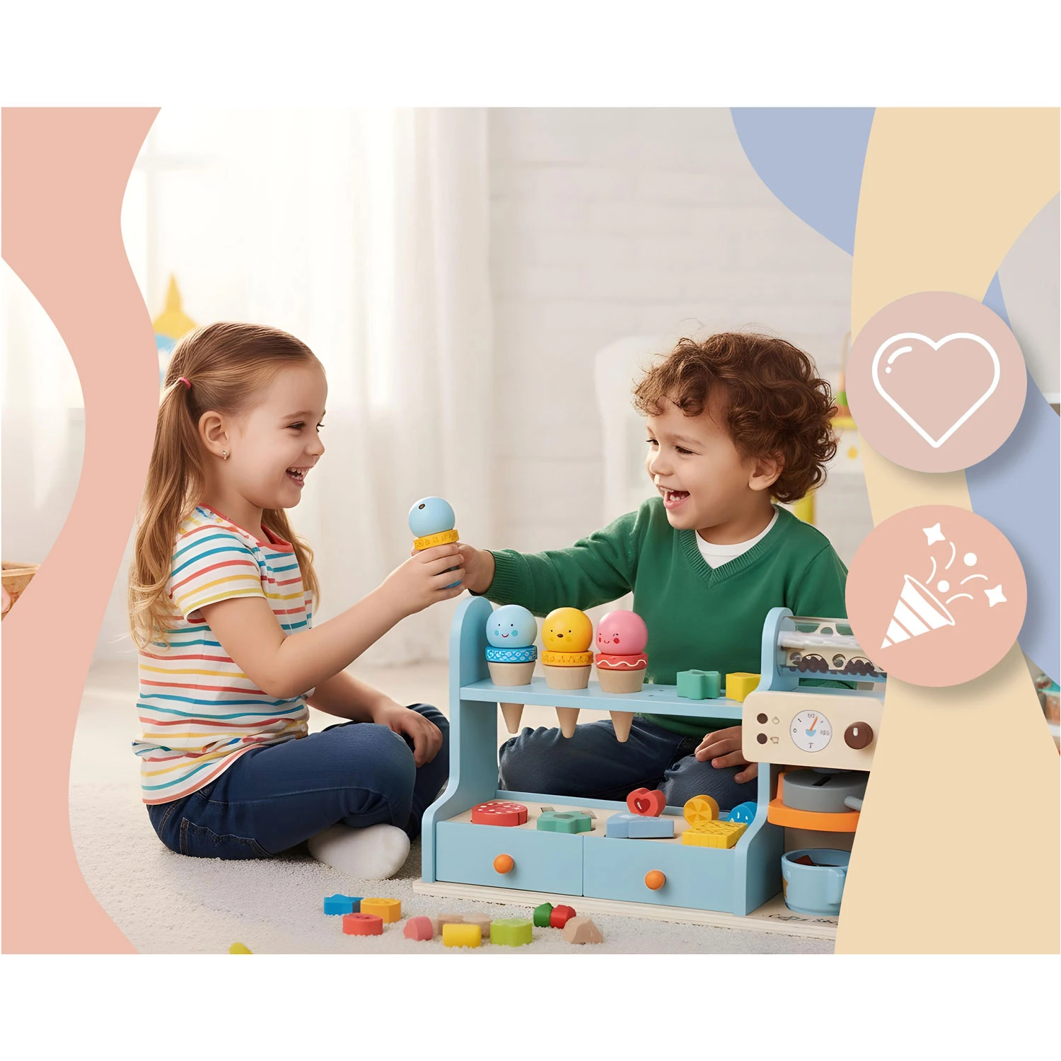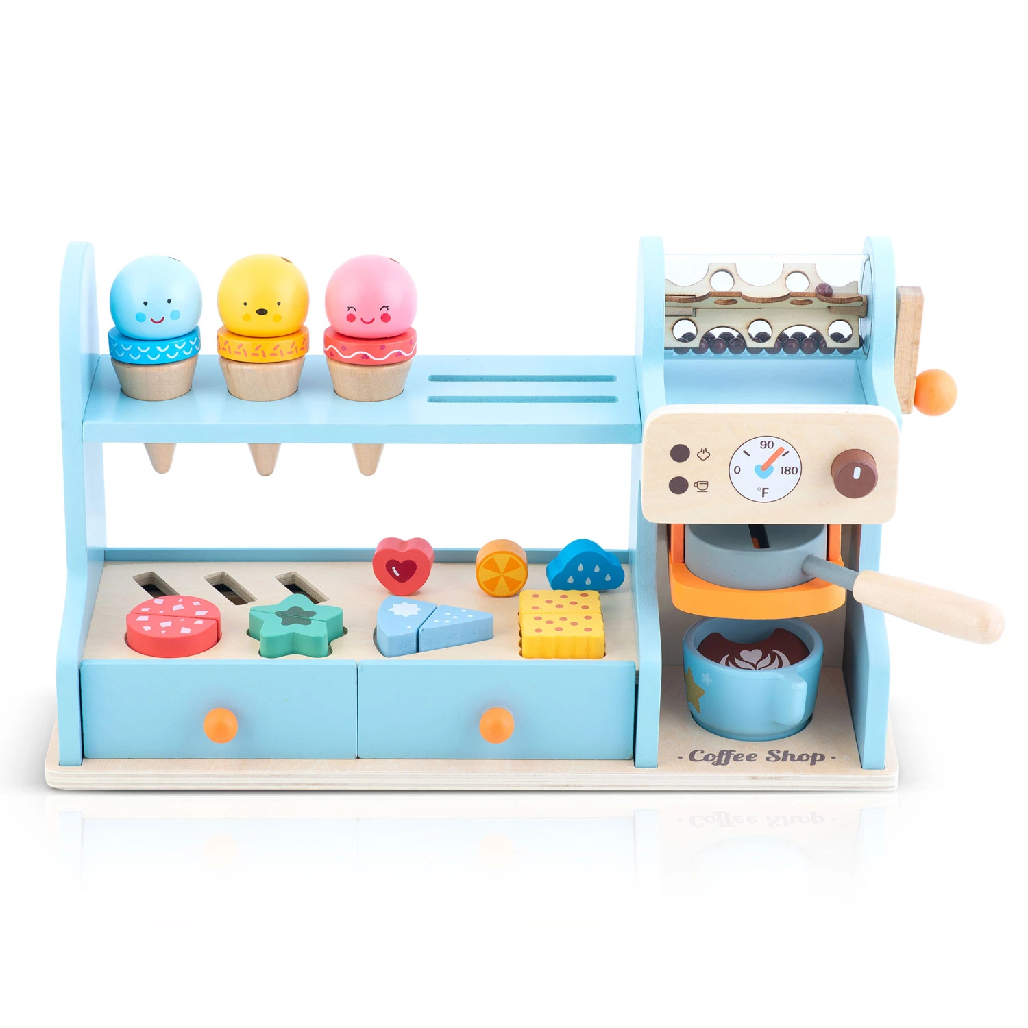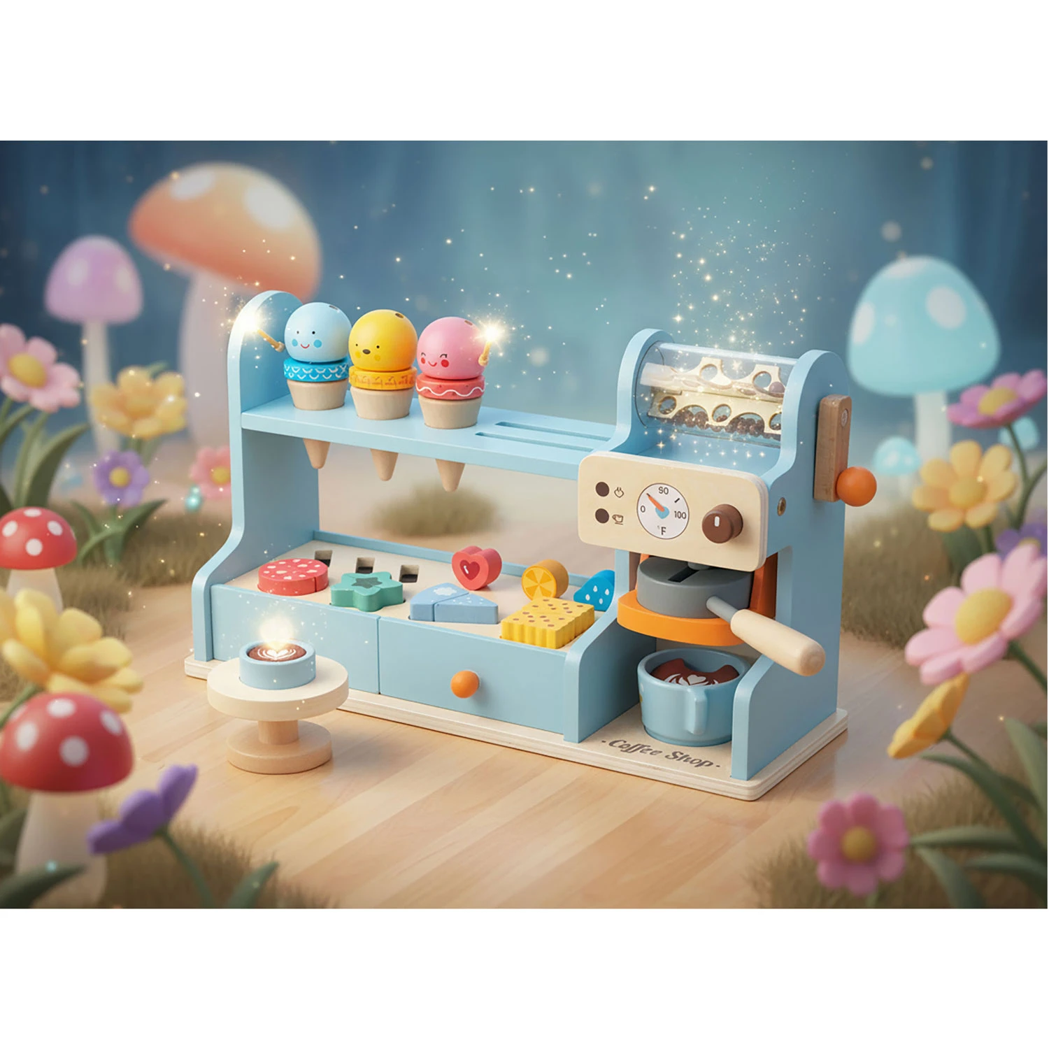 Dřevěná kavárna a zmrzlinárna Nukido NK-880 je barevná a funkční hračka z přírodního dřeva vysoké kvality. Intenzivní barvy stimulují zrak dítěte, usnadňují učení barev a podporují rozvoj vizuální percepce. Použité bezpečné barvy a odolné dřevo zajišťují, že set je vhodný pro malé hráče a vydrží dlouhé roky každodenního hraní.