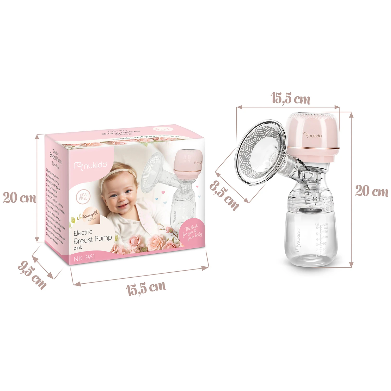 Elektrická odsávačka mateřského mléka Nukido NK-961 je navržena tak, aby pokryla všechny potřeby kojících maminek. Kompaktní bezdrátové provedení s integrovanou lithiovou baterií, přehledný noční LED displej a dotykový panel z ní dělají pohodlného pomocníka doma i na cestách. Materiály s antibakteriálními vlastnostmi se snadno čistí a vybrané části lze mýt v myčce (mimo elektrický panel). Odsávačka je 100% bez BPA.