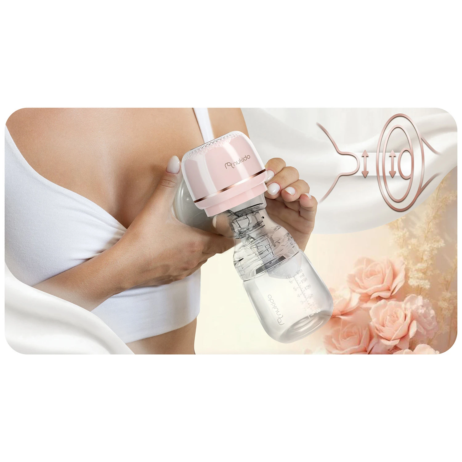 Třífázová technologie věrně napodobuje přirozený rytmus sání dítěte: nejprve jemně stimuluje a masíruje pro spuštění toku mléka, následně přechází do pomalejšího, hlubšího sání a na závěr zajišťuje důkladné odsátí. Každá z fází nabízí 9 úrovní nastavení, takže si snadno přizpůsobíte sílu sání svým individuálním potřebám. Silikonová univerzální masážní vložka je měkká a šetrná k pokožce a zároveň podporuje tok mléka příjemnou stimulací.
