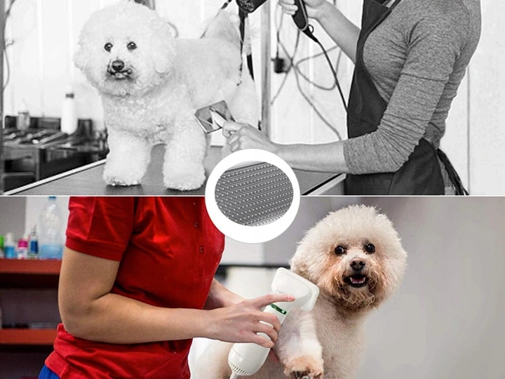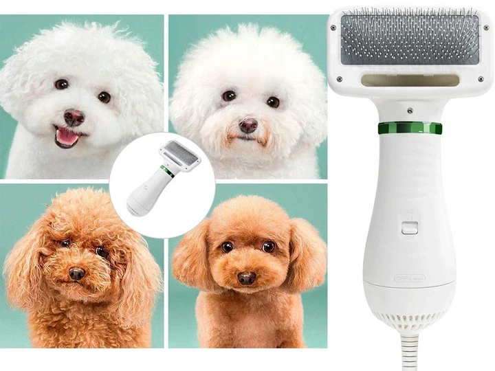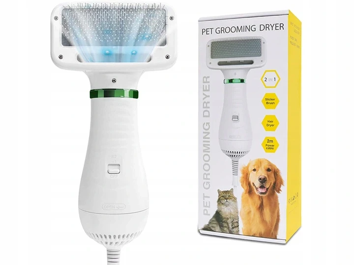 Sušička/kartáč pro domácí mazlíčky 2 v 1 je perfektní zařízení, když chcete svého mazlíčka umýt, poté usušit a vyčesat.