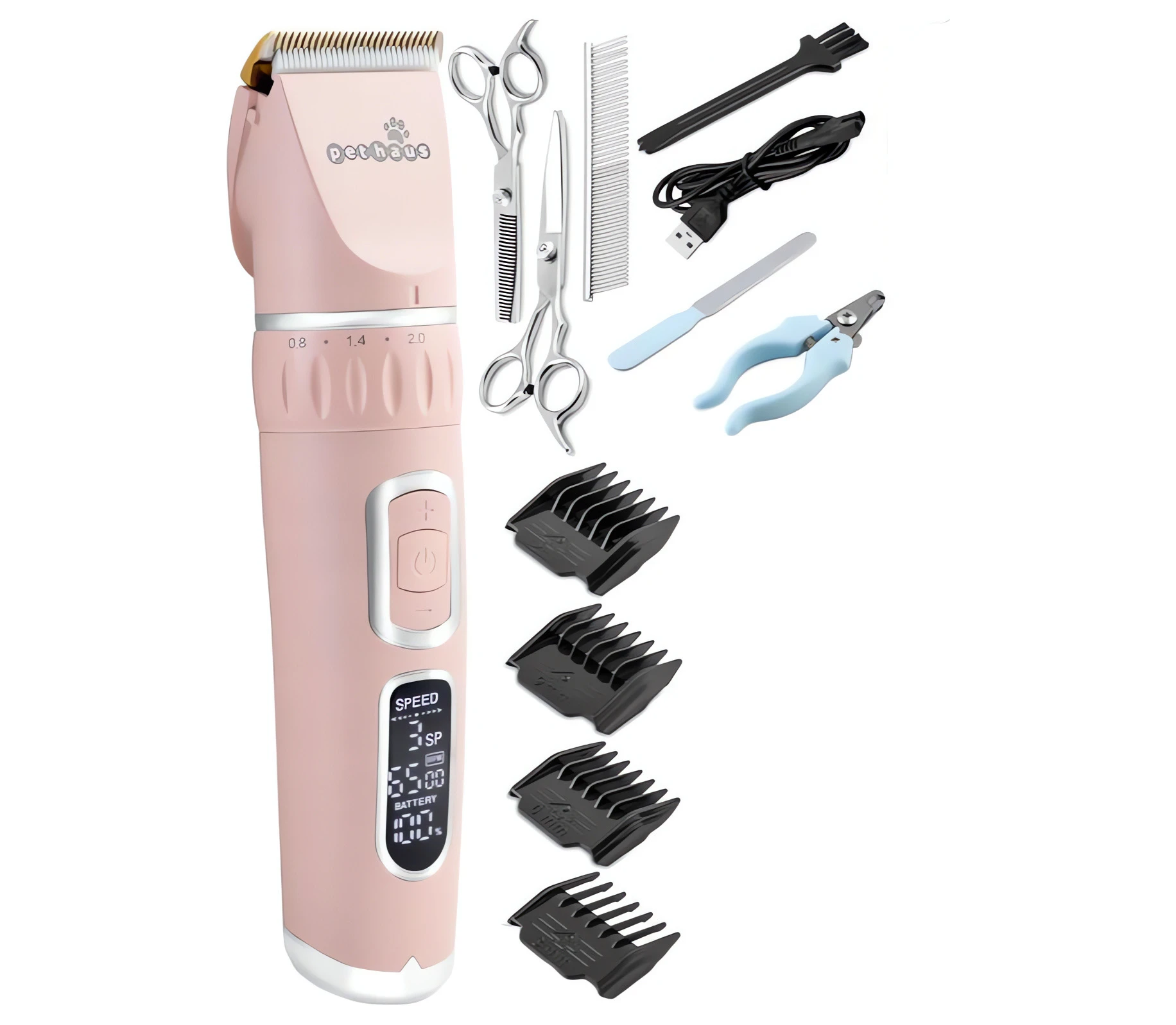- Akcesoria v setu: USB‑C kabel, čistící kartáček, hřeben, nůžky, kleštičky na drápky, pilníček