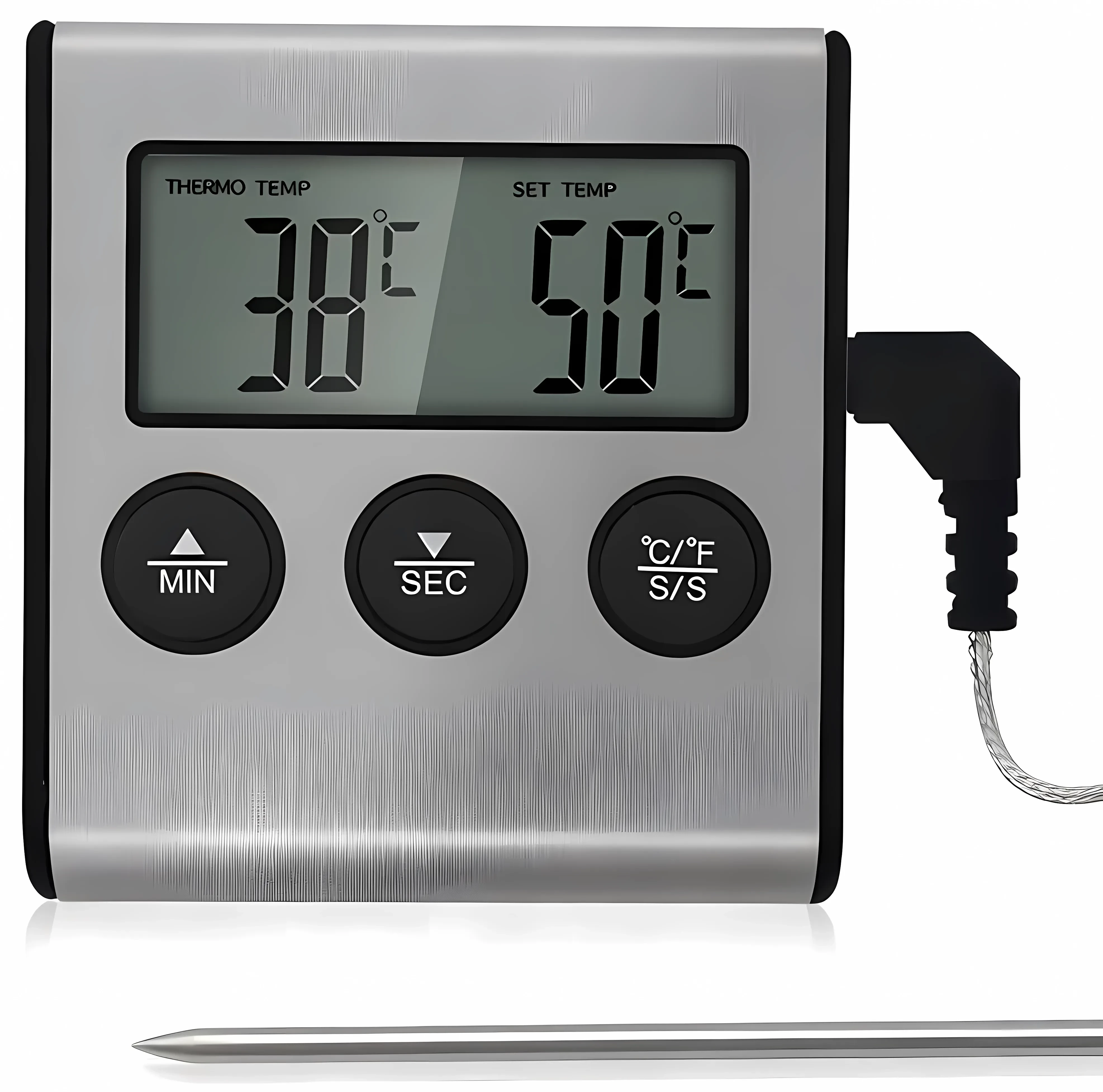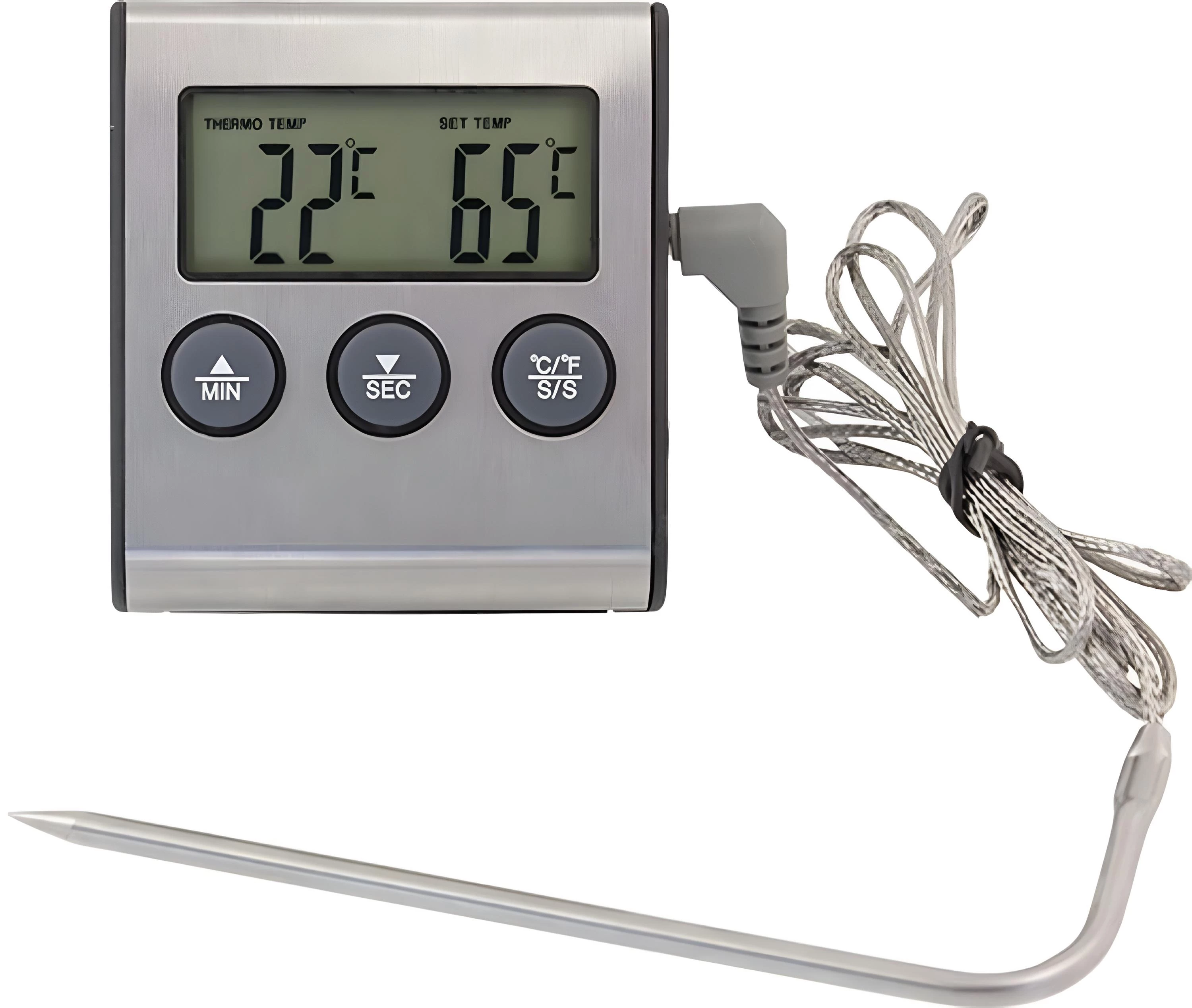 Pokud chcete péct maso jako profesionálové, použijte tento sofistikovaný digitální teploměr se sondou na maso včetně časomíry a dosáhnete přesné a konzistentní výsledky.