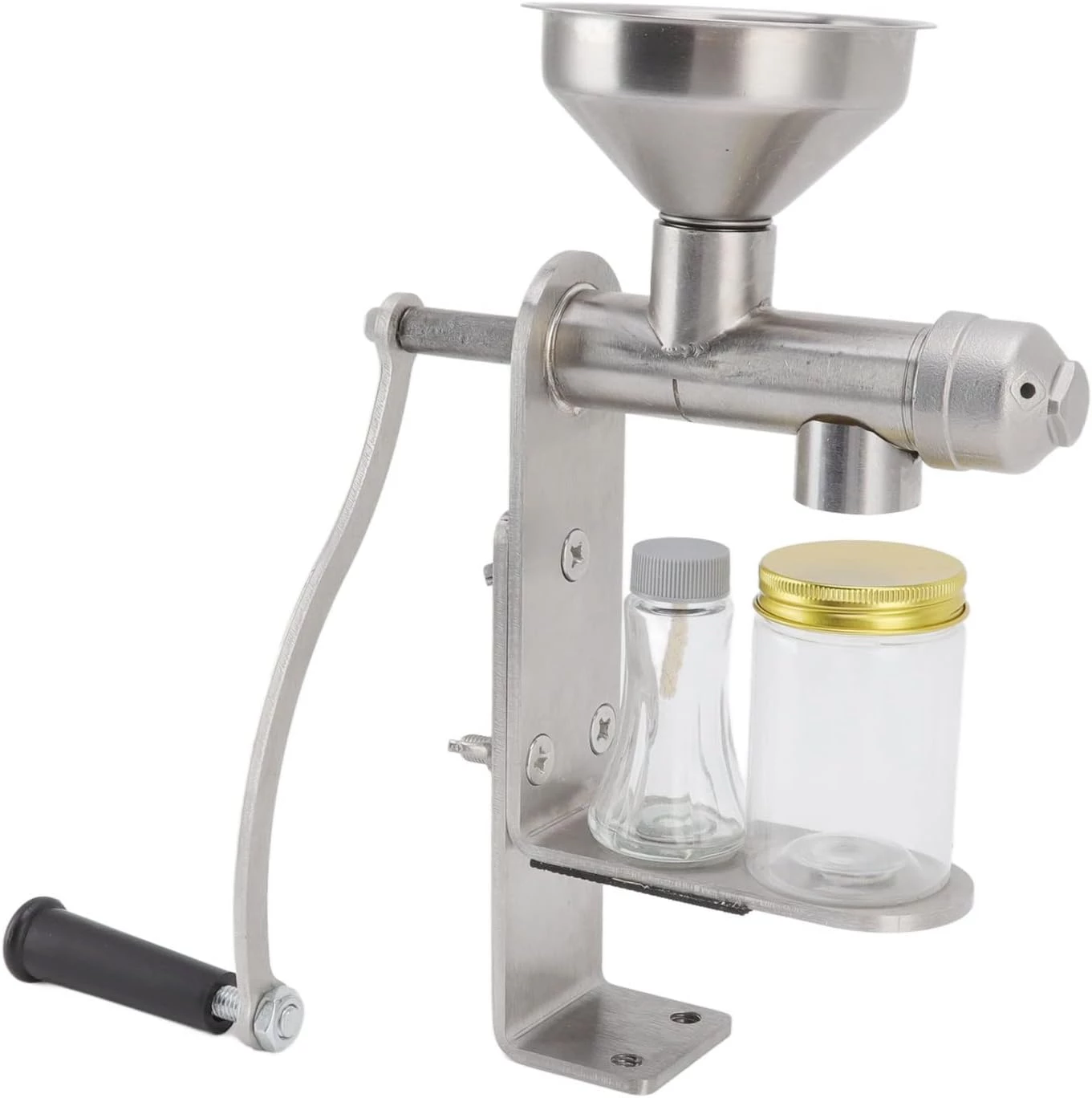 Vyrobeno z potravinářské nerezové oceli, tento ruční lis na olej je odolný, robustní, antikorozní, energeticky úsporný a nepoškozuje vaše zdraví. Kromě toho lze přiložené lahve nahradit běžnými lahvemi pro domácnost, takže se nemusíte bát.