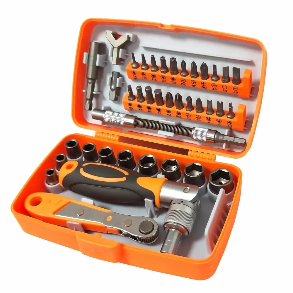 Tato sada šroubováků 38v1 se Vám bude hodit při ne jedné příležitosti. Přijde vhod při běžném servisu, ale také třeba při výměně displeje, baterie nebo dalších náhradních dílů mobilního telefonu. Sada se skládá z rukojeti šroubováčku a výměnných hrotů, které jsou přehledně naskládané v ochranném plastovém obalu, tak aby nedošlo k jejich ztrátě. Povrch rukojeti je speciálně upraven proti prokluzu.