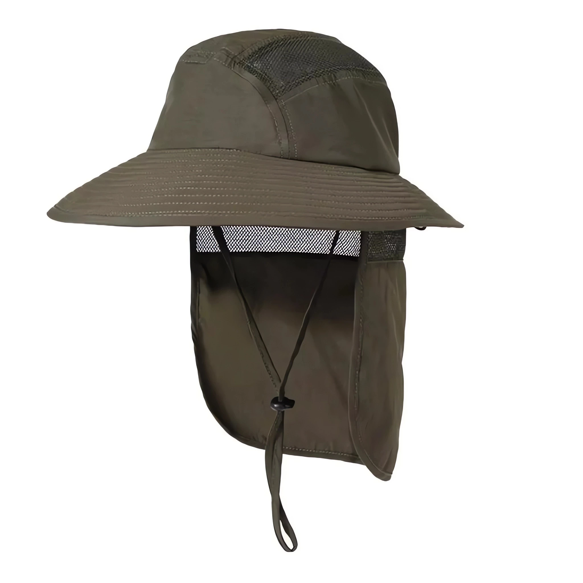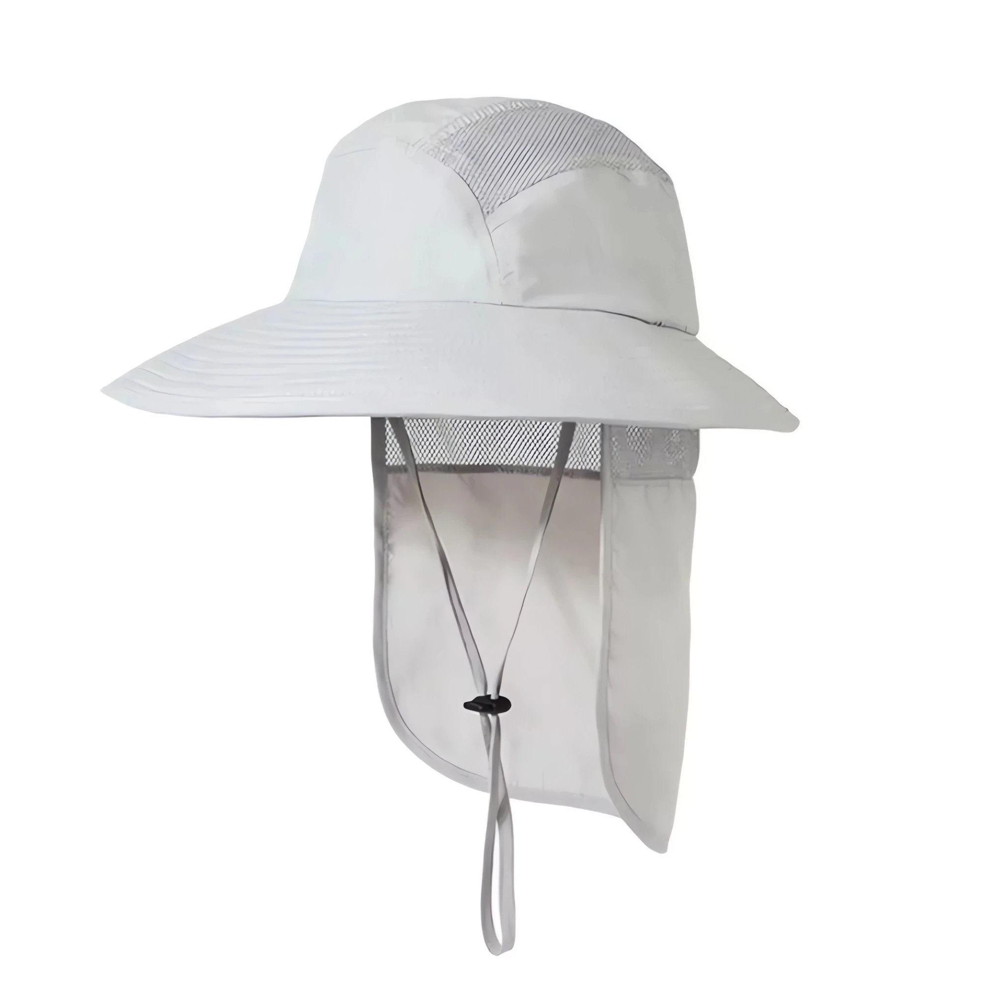 Rybářský klobouk je vyroben z odolného prodyšného materiálu. Síťovaná vložka kolem špičky hlavy zabraňuje pocení pokožky a umožňuje ventilaci hlavy v horkých dnech pro pohodlí při nošení. Má nastavitelný pásek pod bradu a síťku chránící krk před sluncem.