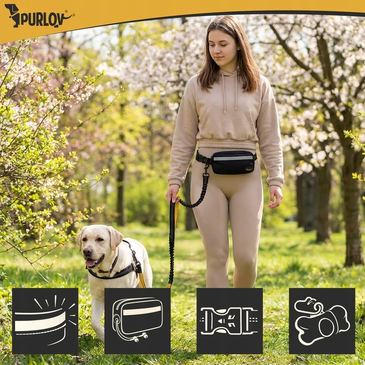 Bederní pás s vodítkem je komfortní systém, který umožňuje pohodlné a kontrolované venčení nebo běhání se psem bez potřeby držet vodítko v ruce. Polstrovaný nastavovatelný bederní pás a reflexní prvky zajišťují stabilní uchycení k tělu a lepší viditelnost při večerních nebo ranních aktivitách. Vodítko má tlumič nárazů, který snižuje trhání a zatížení páteře, s pevnými karabinami pro bezpečné připojení psa až do hmotnosti 50 kg. Systém je vhodný pro muže i ženy.
