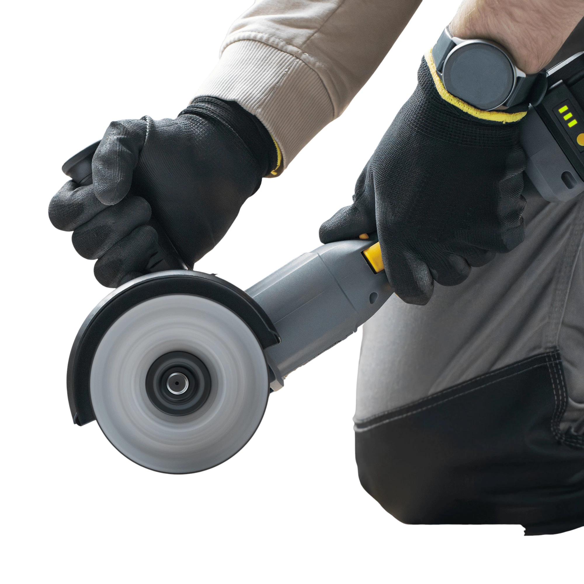 Bezpečnostní upozornění: Před každým použitím zkontrolujte technický stav brusky, zda není poškozený kotouč, kryt nebo tělo nářadí. Při práci vždy používejte vhodné osobní ochranné pomůcky, jako jsou ochranné brýle, pracovní rukavice, pevná obuv a v případě dlouhodobého používání i chrániče sluchu. Brusku nikdy nepoužívejte bez nasazeného ochranného krytu kotouče. Zařízení používejte pouze s kompatibilní 20V baterií doporučenou výrobcem, jiný typ akumulátoru může způsobit poruchu nebo nebezpečí úrazu. Před výměnou brusného kotouče nebo údržbou vždy odpojte baterii. Nepoužívejte nářadí ve vlhkém nebo mokrém prostředí. Během práce držte brusku oběma rukama a dbejte na stabilní postoj. Uchovávejte mimo dosah dětí. Nářadí není určeno pro použití osobami se sníženou fyzickou nebo mentální schopností bez dozoru. Před prvním použitím si důkladně přečtěte návod k obsluze a dodržujte pokyny výrobce.