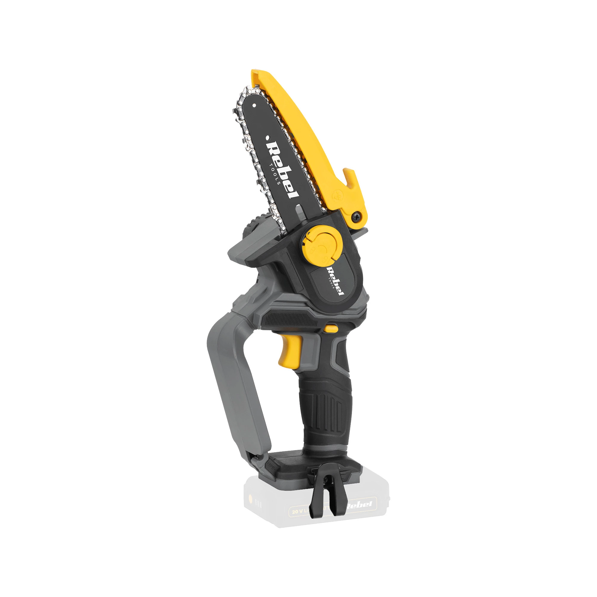 Bezpečnostní upozornění: Před použitím si pečlivě přečtěte návod k obsluze. Řetězovou pilu používejte pouze s kompatibilní 20V Li-Ion baterií doporučenou výrobcem. Nikdy neprovádějte údržbu, výměnu řetězu nebo čištění, pokud je baterie připojena. Vždy používejte vhodné ochranné pomůcky – ochranné brýle, rukavice, pevnou obuv a nejlépe i chrániče sluchu. Při práci zajistěte stabilní postoj a oběma rukama držte zařízení pevně. Nepoužívejte pilu ve vlhkém nebo deštivém prostředí, hrozí riziko úrazu elektrickým proudem. Udržujte bezpečnou vzdálenost od ostatních osob, zvířat a překážek. Nepoužívejte pilu k řezání materiálů, pro které není určena (např. kov, plast, kámen). Nikdy neodstraňujte bezpečnostní prvky zařízení. Uchovávejte mimo dosah dětí a nepovolaných osob. V případě poškození zařízení jej dále nepoužívejte a kontaktujte autorizovaný servis.