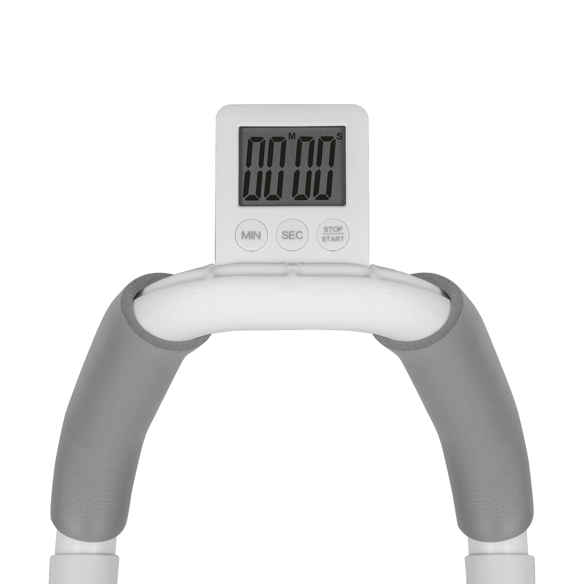 Tento multifunkční posilovací přístroj slouží k efektivnímu posilování břišních svalů, paží, ramen, zad a středu těla. Kombinuje stabilní dvoukolečkovou konstrukci s pohodlnými podložkami pro kolena a ergonomickými rukojeťmi. Součástí je také elektronický časovač umístěný v přední části, který umožňuje sledovat čas cvičení, počet opakování nebo další tréninkové parametry (v závislosti na modelu).