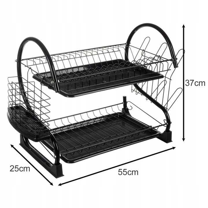 Dvouúrovňový stojan na sušení nádobí se dvěma bočními madly se skvěle hodí do každé kuchyně, jak doma, tak v malých restauracích. Jedná se o ideální řešení do kuchyně, kde je důležité maximální využití prostoru. Díky svému kompaktnímu a prostornému designu se skvěle hodí do bytů s omezeným prostorem a svým elegantním designem se bude dobře vyjímat v moderních interiérech. Dá se položit na kuchyňskou linku vedle dřezu nebo do skříňky na sušení nádobí po umytí.