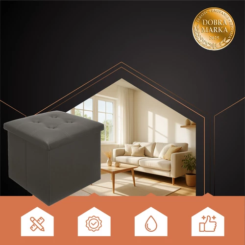 Taburet s úložným prostorem je praktickým a stylovým řešením pro jakýkoli interiér. Čalouněná kostka z nepromokavého materiálu nabízí měkké sedátko a úložný prostor o objemu 39 litrů - ideální pro uložení drobných předmětů, hraček nebo dek. Skládací konstrukce, vysoká kvalita zpracování a maximální nosnost spojují funkčnost s elegantním vzhledem - bude se dobře hodit do obývacího pokoje, ložnice nebo chodby.