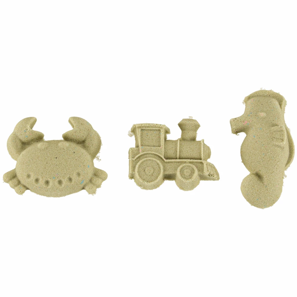 Béžový písek zaručuje kreativní hraní. Díky svým vlastnostem (písek je vlhký a snadno se rozlévá v rukou) ho můžete tvarovat do různých tvarů.