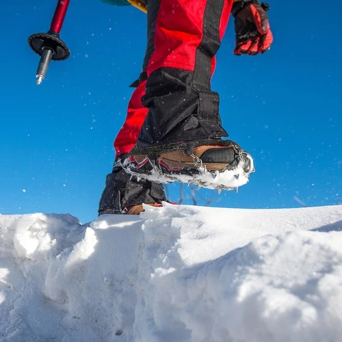 Flexibilní návleky na boty, vybavené kovovými hroty, které jsou ideální pro turistiku v lesích a horách. Nasazení nesmeků zvládnete běhemchůze v obtížných povětrnostních podmínkách, jako je sníh a led.