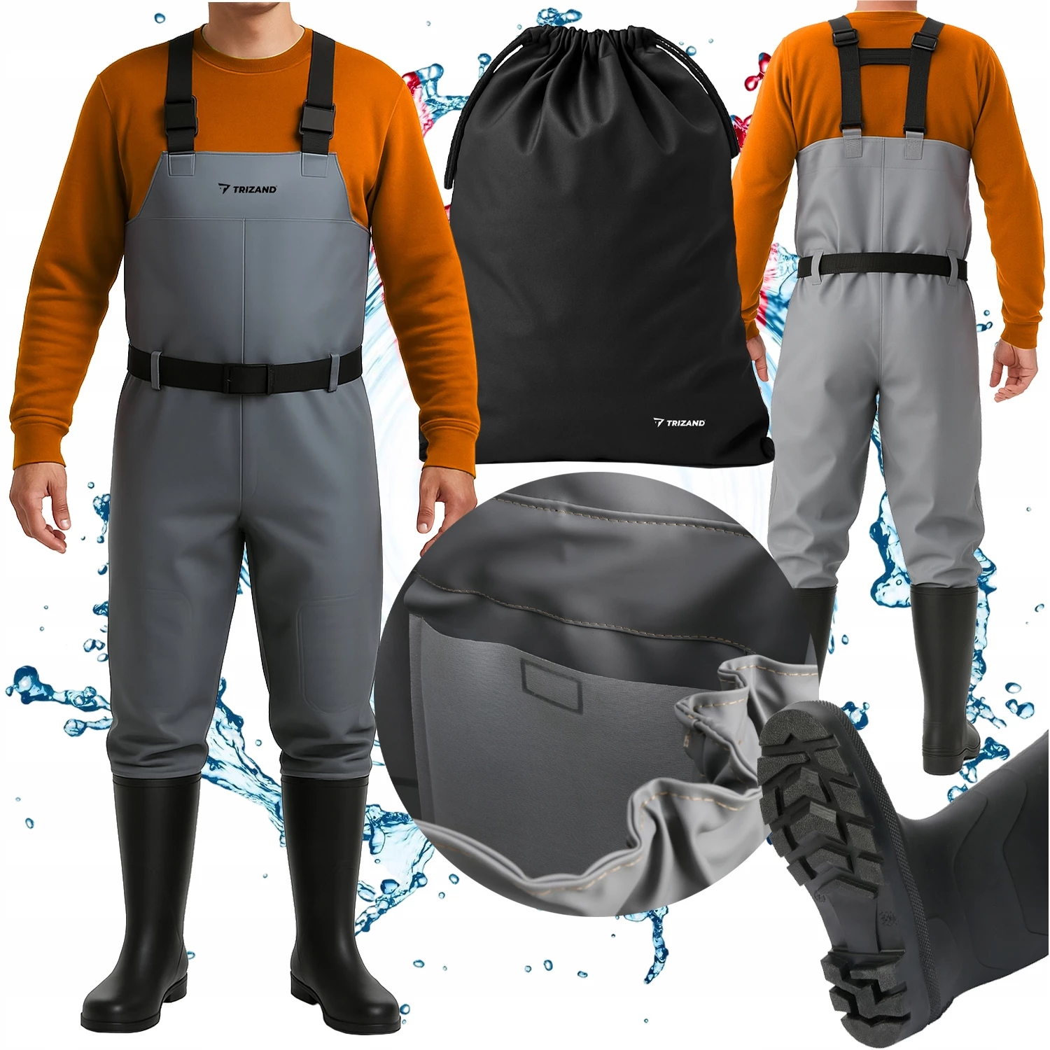 Ujistěte se, že kalhoty nejsou poškozené, roztrhané nebo jinak vadné, což může snížit jejich voděodolnost nebo pevnost.Vyvarujte se použití v hluboké vodě, rychle proudící vodě nebo při jiných nebezpečných podmínkách, které by mohly ohrozit vaši bezpečnost nebo způsobit utonutí.Při nošení kalhot se ujistěte, že jsou správně upevněny a dotažené, aby nedocházelo k jejich sklouznutí nebo uvolnění během práce.Používejte správnou velikost (v tomto případě 43/44) pro pohodlné a bezpečné nošení. Příliš malé nebo příliš velké kalhoty mohou omezit pohyb nebo ohrozit bezpečnost.Po použití kalhot důkladně osušte a skladujte na suchém místě mimo dosah dětí. Vyvarujte se skladování v mokrém nebo vlhkém prostředí.