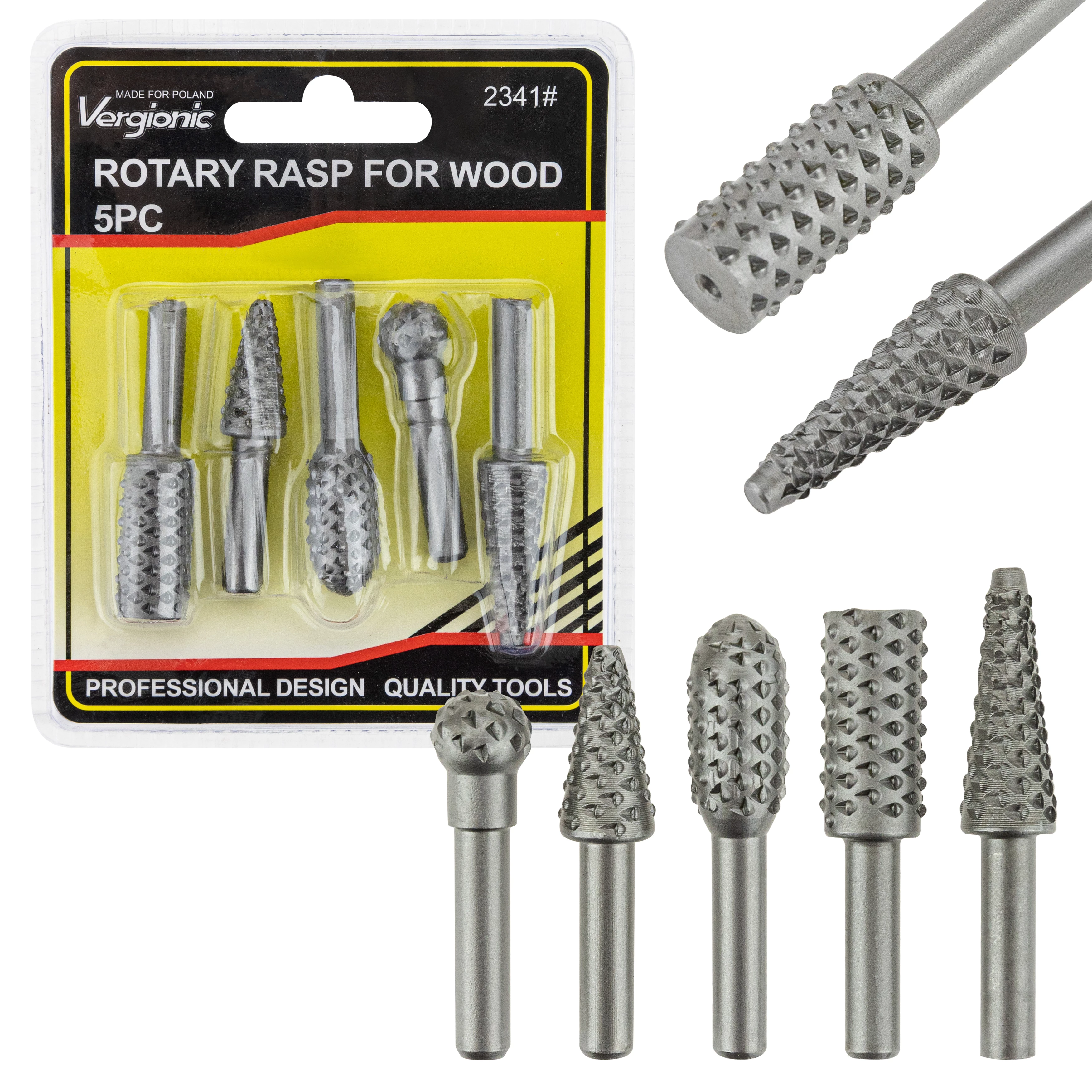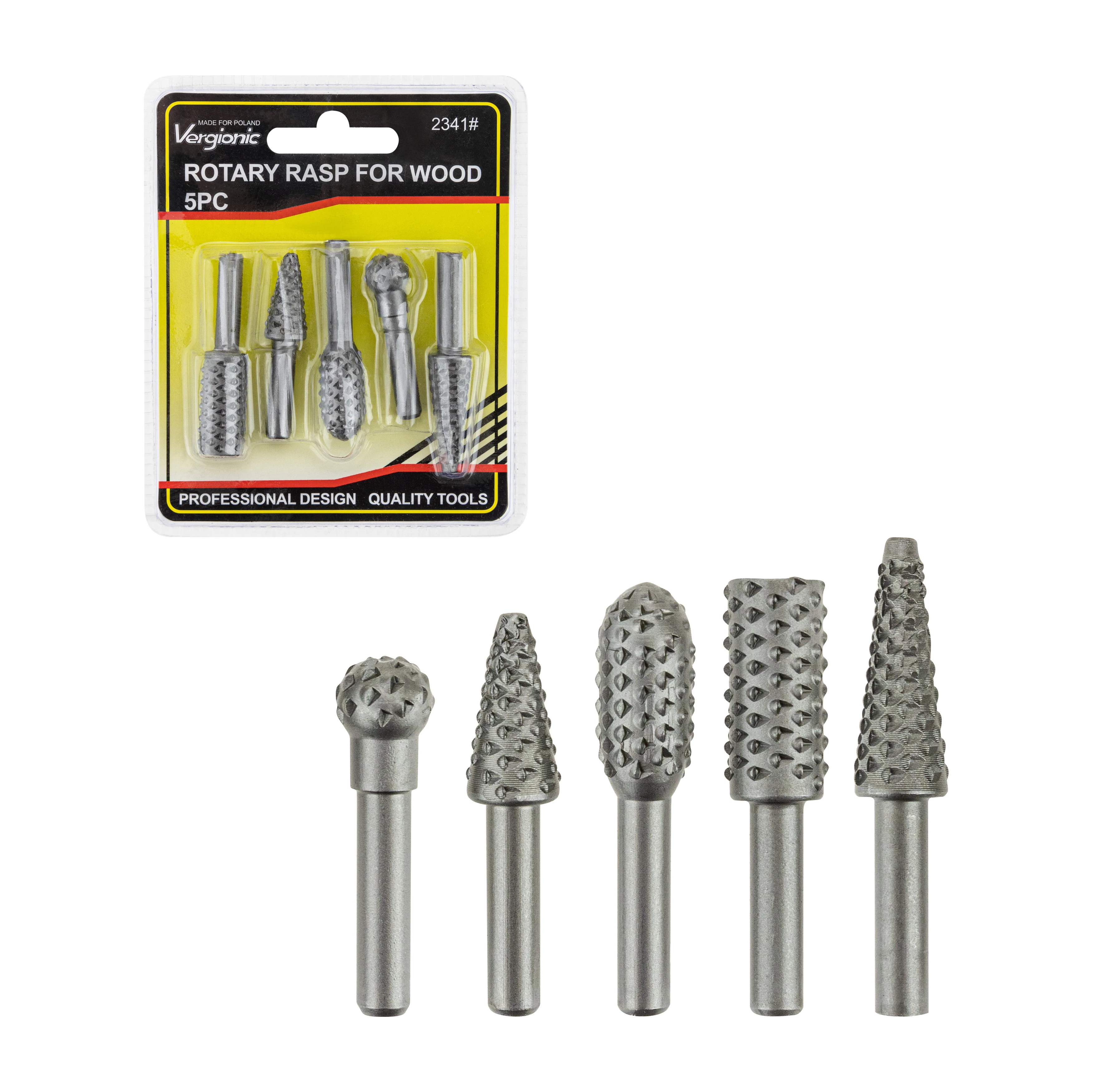 Rotační rašple se jednoduše nasazují na běžné vrtačky. Pilníky jsou vyrobeny z kvalitní oceli a dodávány ve stříbrné variantě.