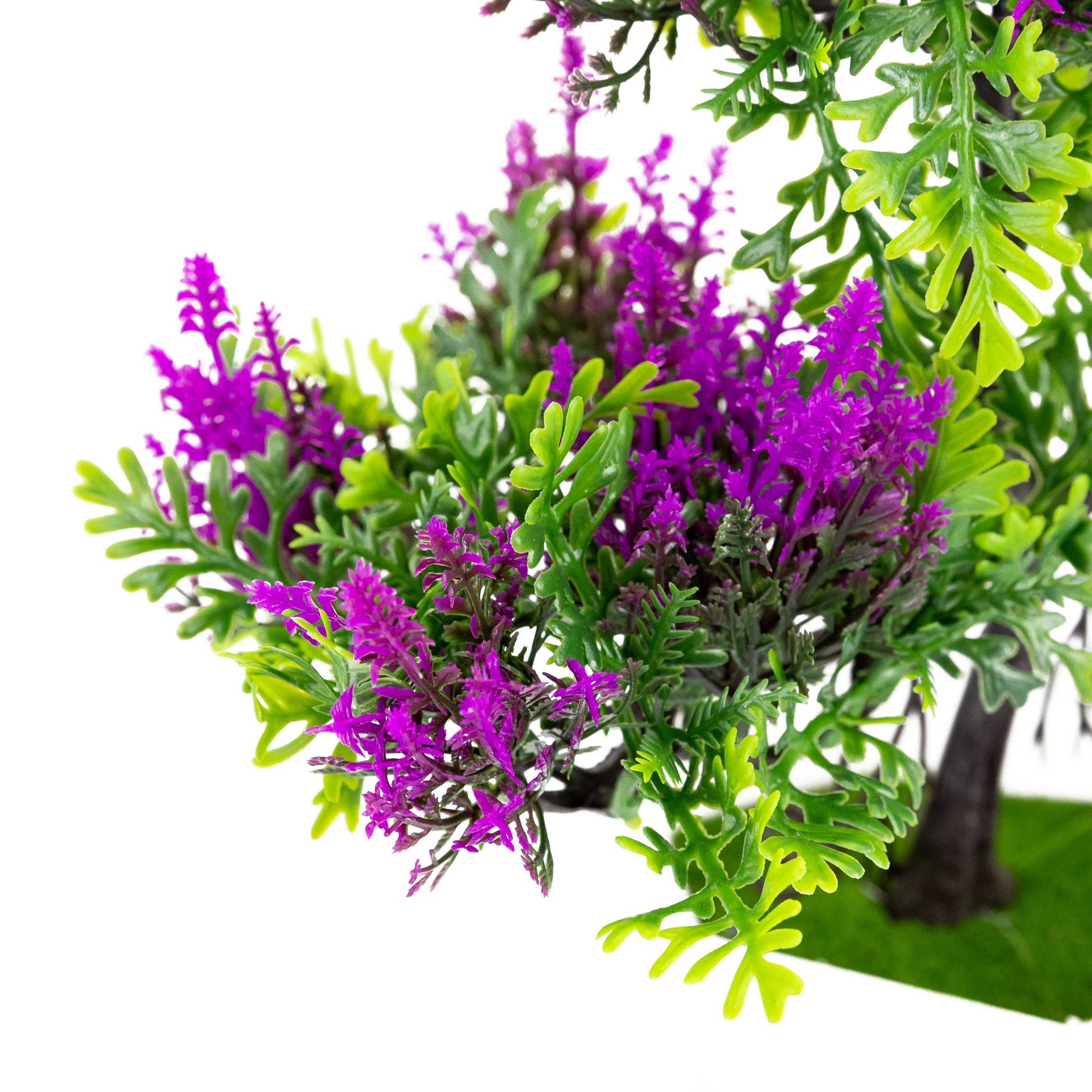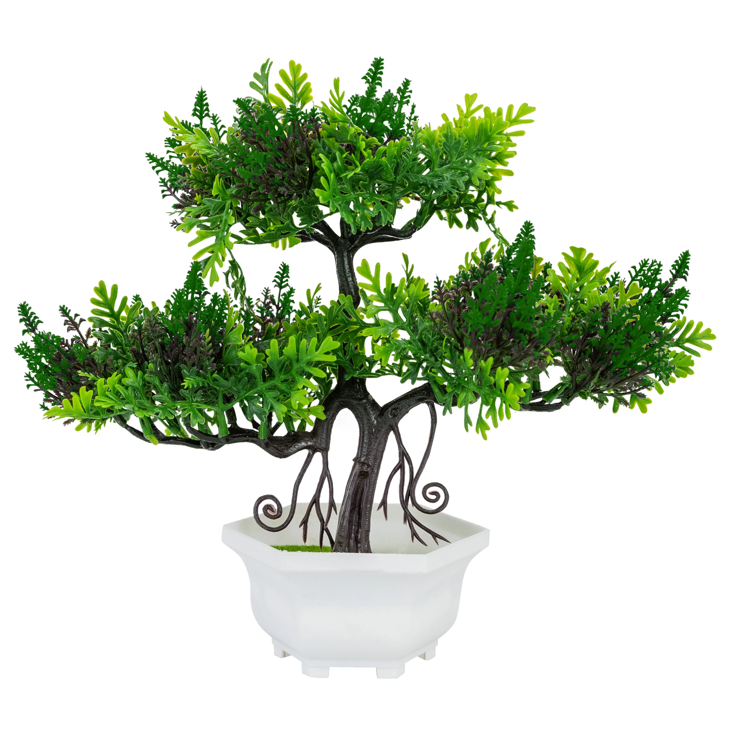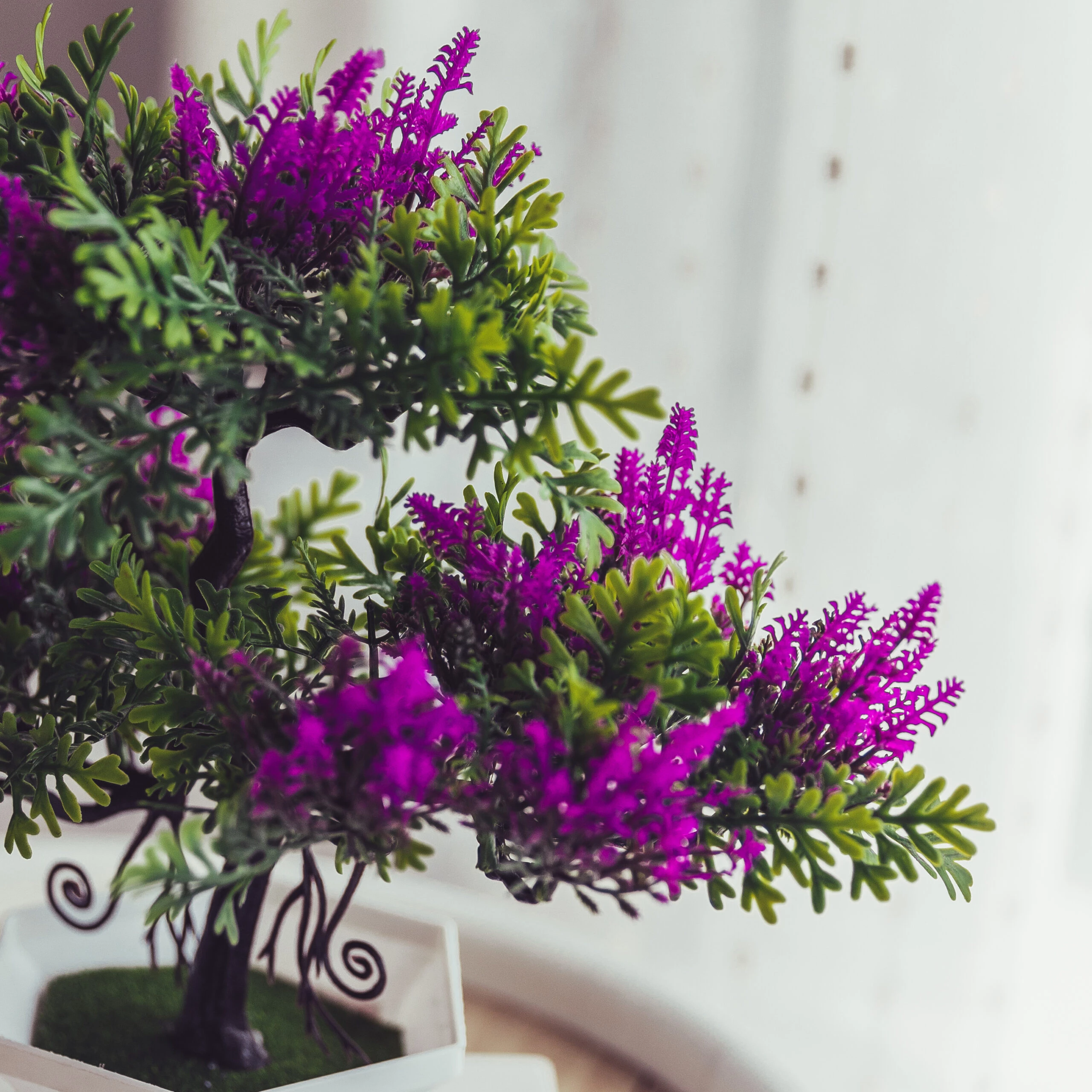 Může za to mnoho faktorů – nedostatek dostatečného světla, nedostatek času nebo zvířata, která dokážou živé květiny zničit. V takových situacích budou vhodnou dekorací umělé květiny připomínající skutečné. Díky nim se nemusíte starat o správnou údržbu – stačí čas od času odstranit prach. Květina v květináči, která dokonale odráží krásu bonsaje. Stonky vyrobené z pružného plastu umožňují snadné tvarování a získání příslušného vizuálního efektu. Je to ideální rostlina do dekorů, kde je obtížné udržet čerstvé květiny. Květina je umístěna v bílém plastovém květináči naplněném umělou trávou.