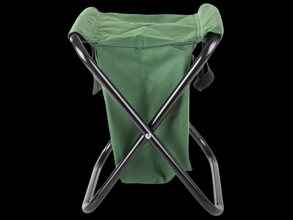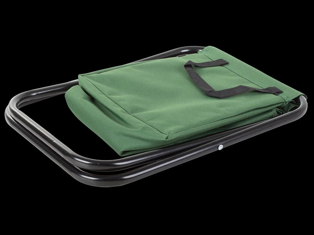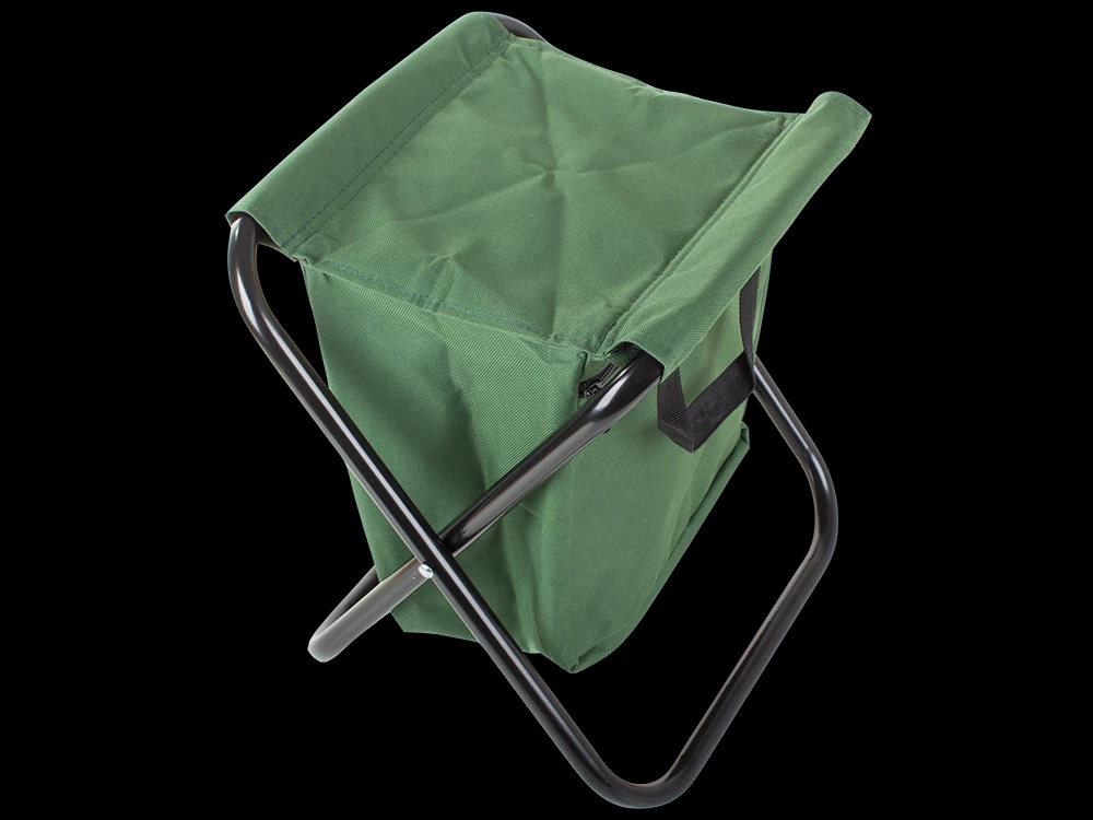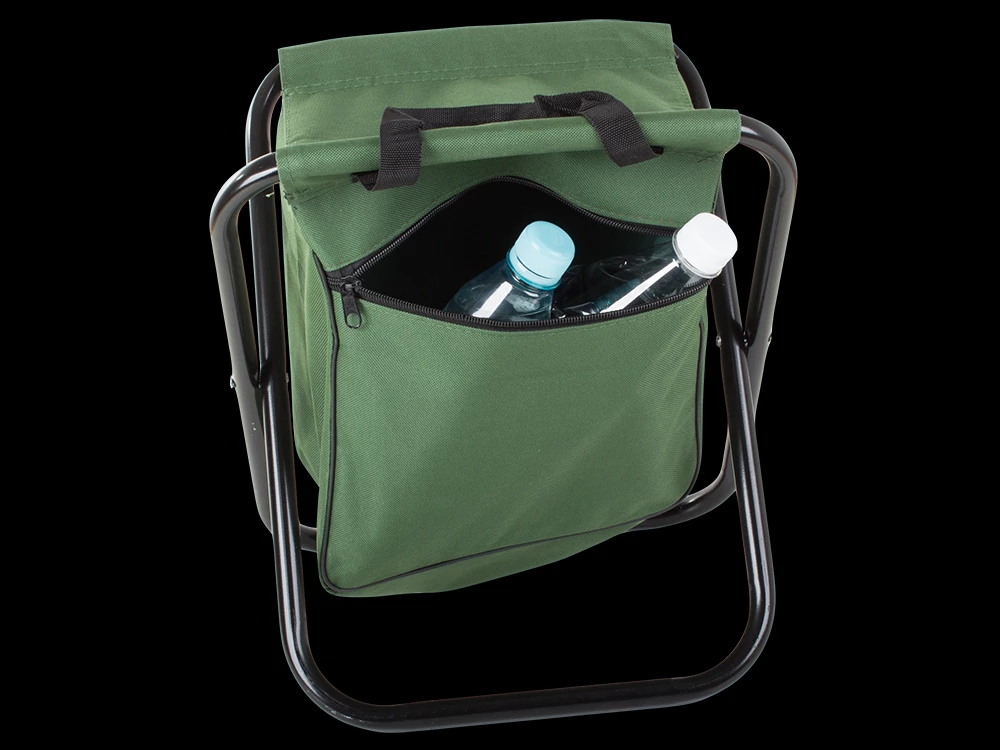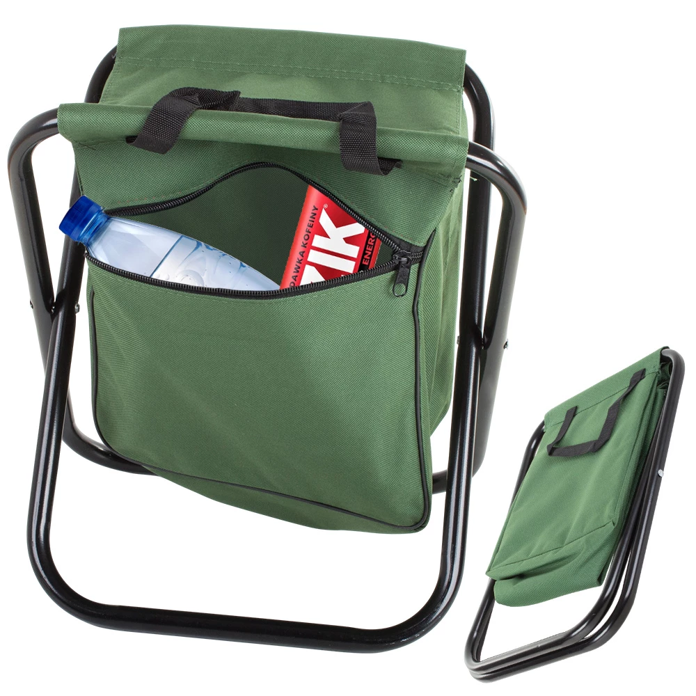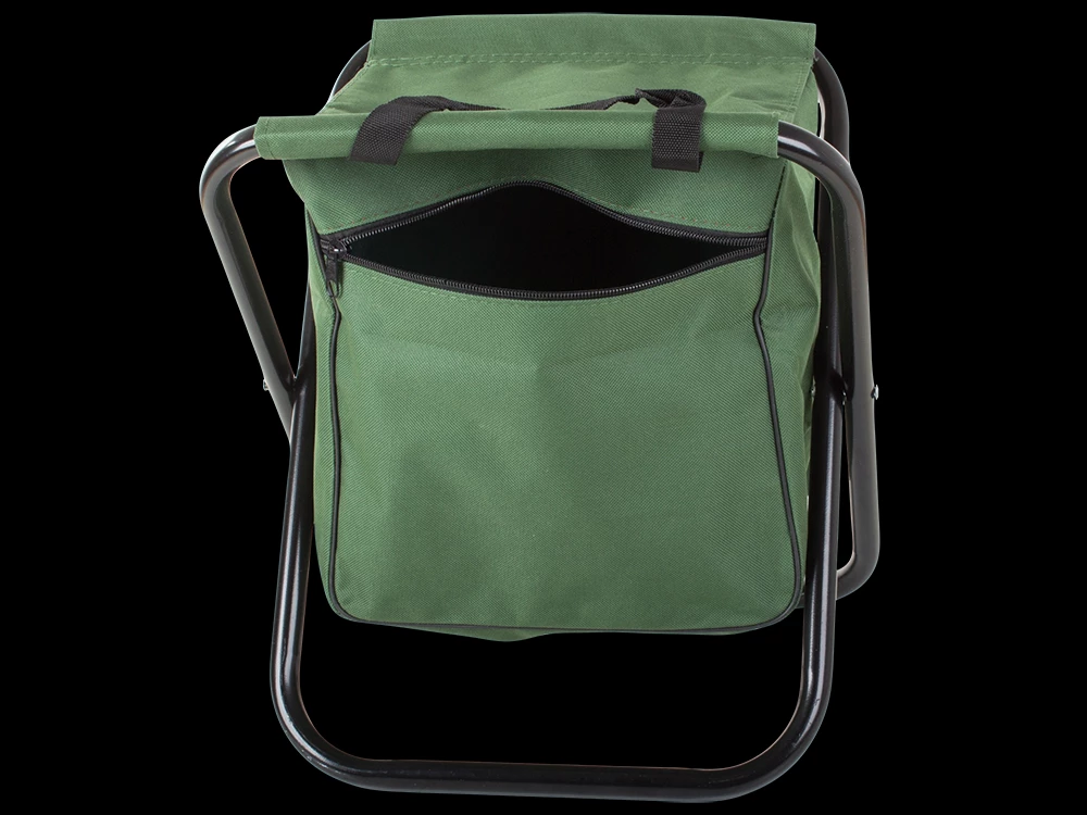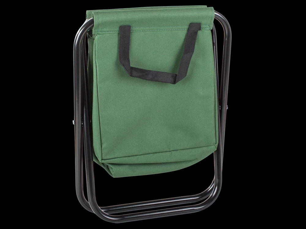 Skládací stolička s opěrkou a brašnou se hodí při kempování nebo rybaření.