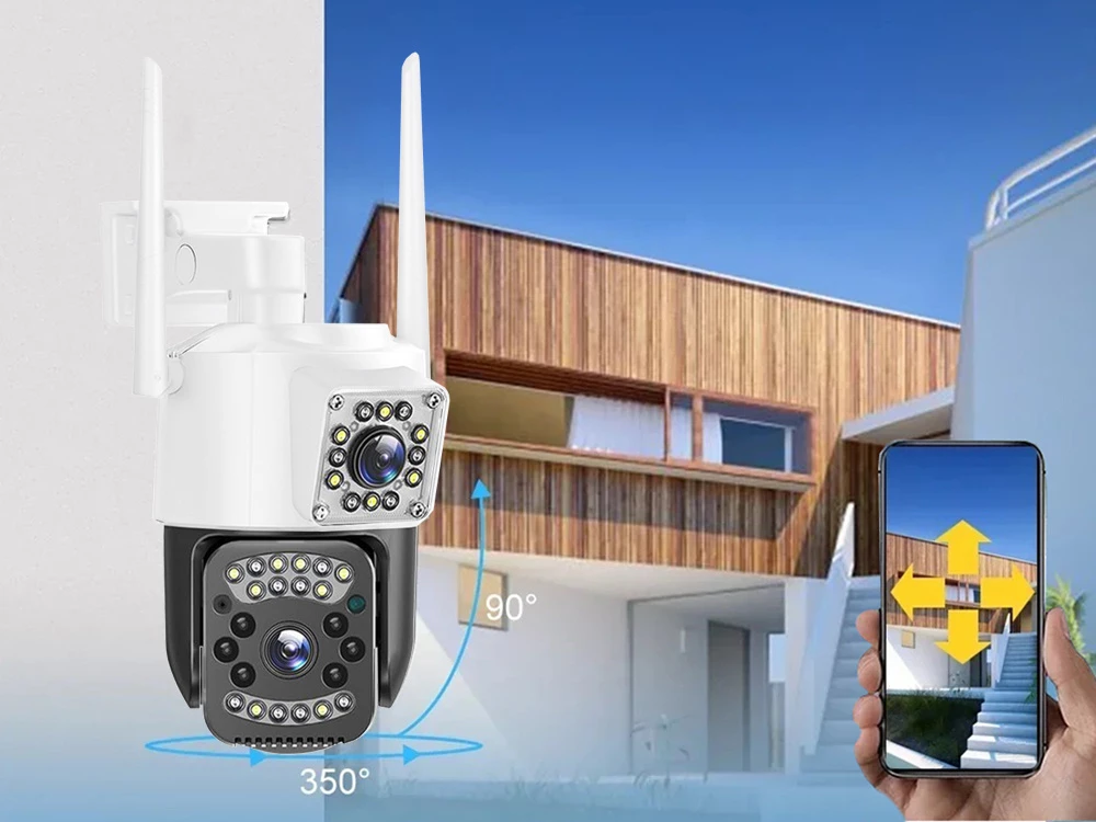 Kamera má dva 6MP objektivy – jeden statický a jeden otočný, což umožňuje simultánní sledování pevného bodu a široké oblasti v rozsahu rotace 355°. Vysoké rozlišení zaručuje detailní a ostrý obraz ve dne i v noci a díky podpoře 4G SIM karet kamera funguje nezávisle na WiFi – stačí vložit kartu s aktivním internetem.