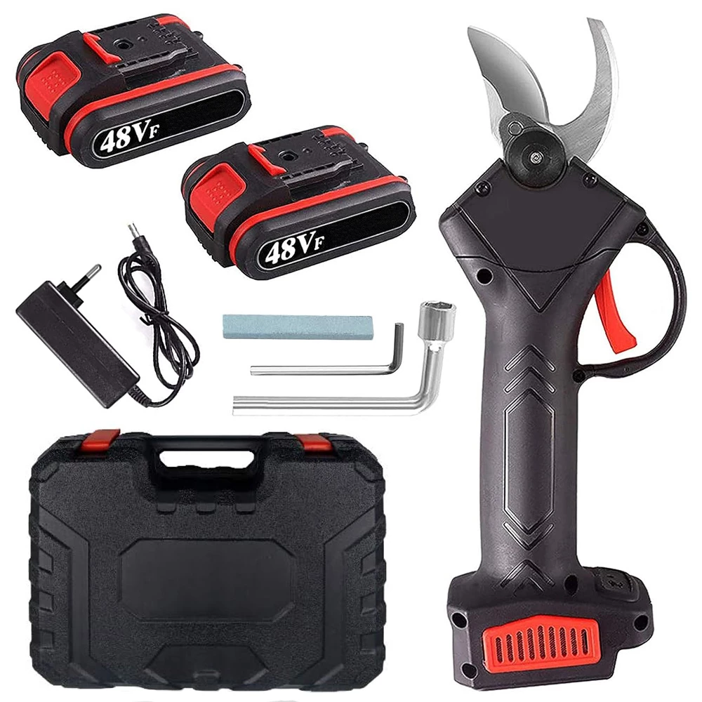 Sada obsahuje baterii 48V, nabíječku, klíče na seřízení čepele, mazivo a pilník. Vše je zabaleno v odolném kufru.
