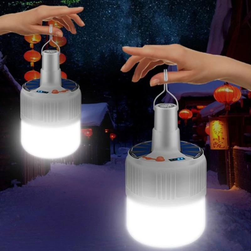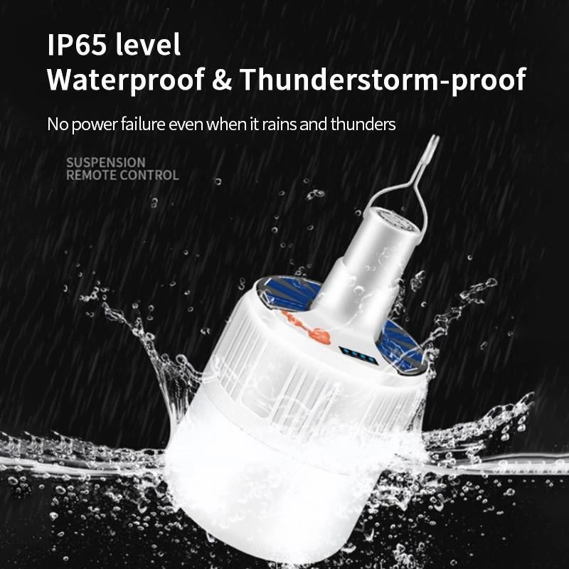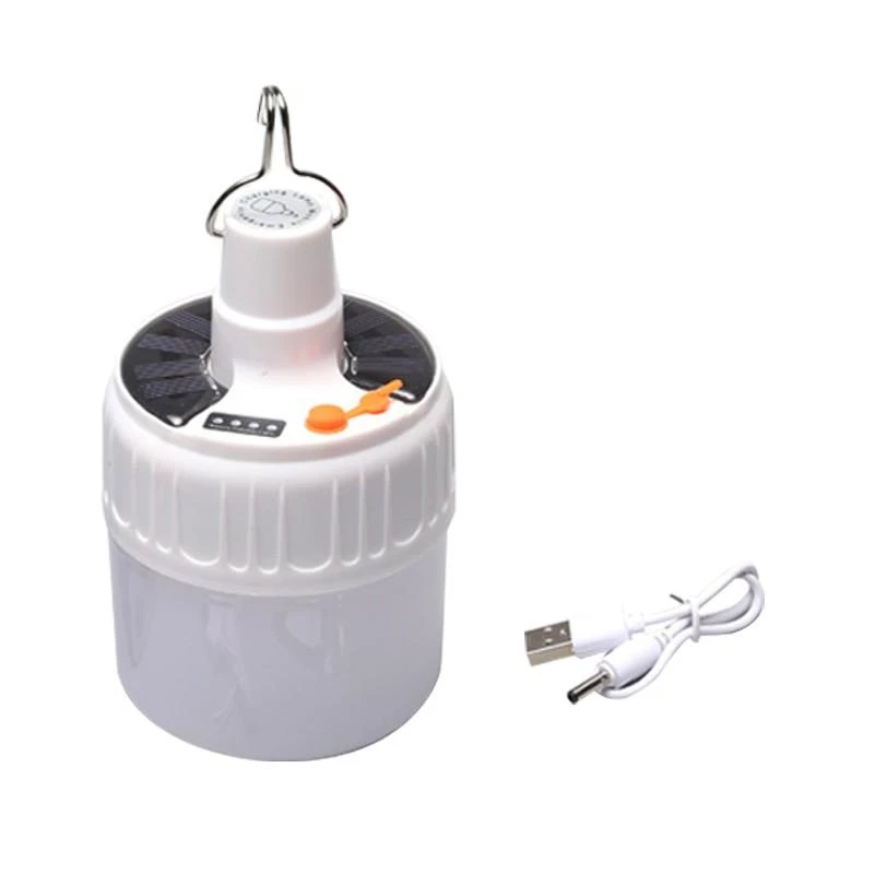 Kempingová žárovka opatřená háčkem, který lze použít kdekoli. Lze nabíjet jak ze solární energie, tak z USB. Kempingová svítilna se velmi snadno používá, ovládá se jedním tlačítkovým spínačem. Nízká hmotnost a kompaktní velikost. Má 5 režimů.