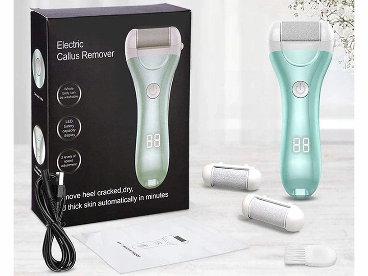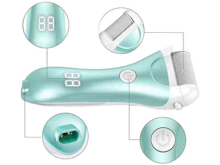 Elektrický pilník na paty achodidla. S elektrickým pilníkem na paty a chodidla budou vaše chodidla jemná během chvilky. Šetrný elektrický pilník dokáže lehce odstranit ztvrdlé mozoly, kuří oka nebo suchou kůži.Funguje na principu otáčení se válečku a díky ergonomické rukojeti se dostane do méně přístupných míst.